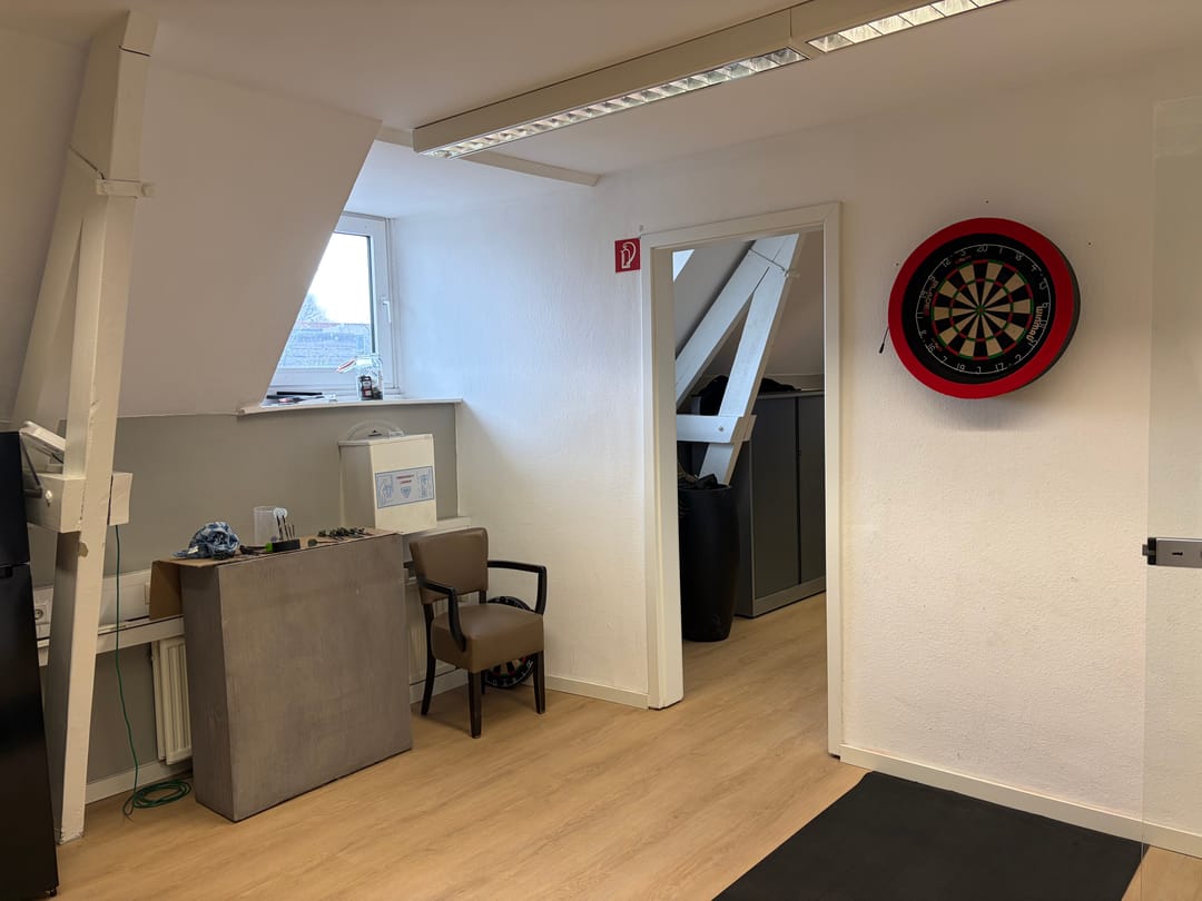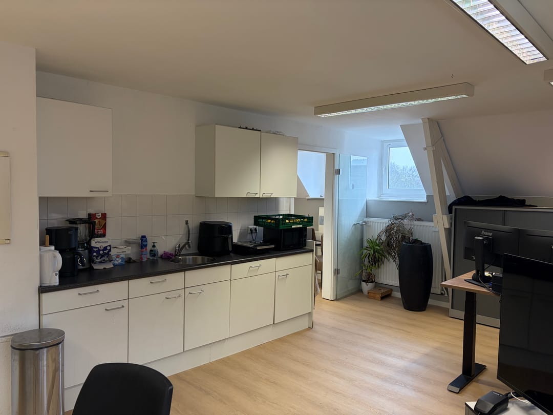 Overloop met toiletruimte, 3 kantoorruimtes (ca. 40,7 m2, 18,8 m2 en 16,9 m2), waarvan de grootste kantoorruimte is voorzien van een keukenblok.