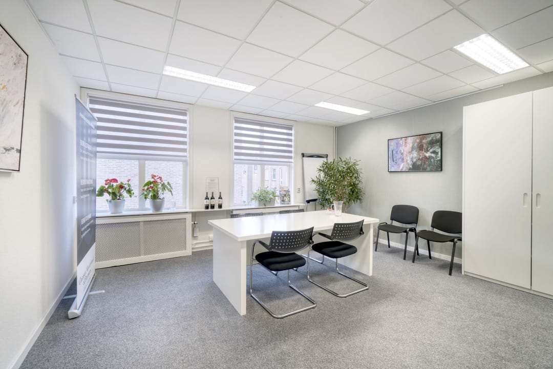 - 1 kantoorkamer (kamer 5) van 23 m2 op de eerste etage. De kamer is voorzien van: vloerbedekking, rolgordijnen, vernieuwde plafonds en lichtarmaturen met Led verlichting.