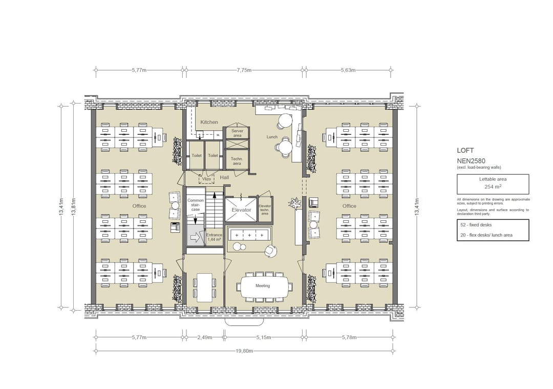 • lift die uitkomt in de eigen kantoorruimte