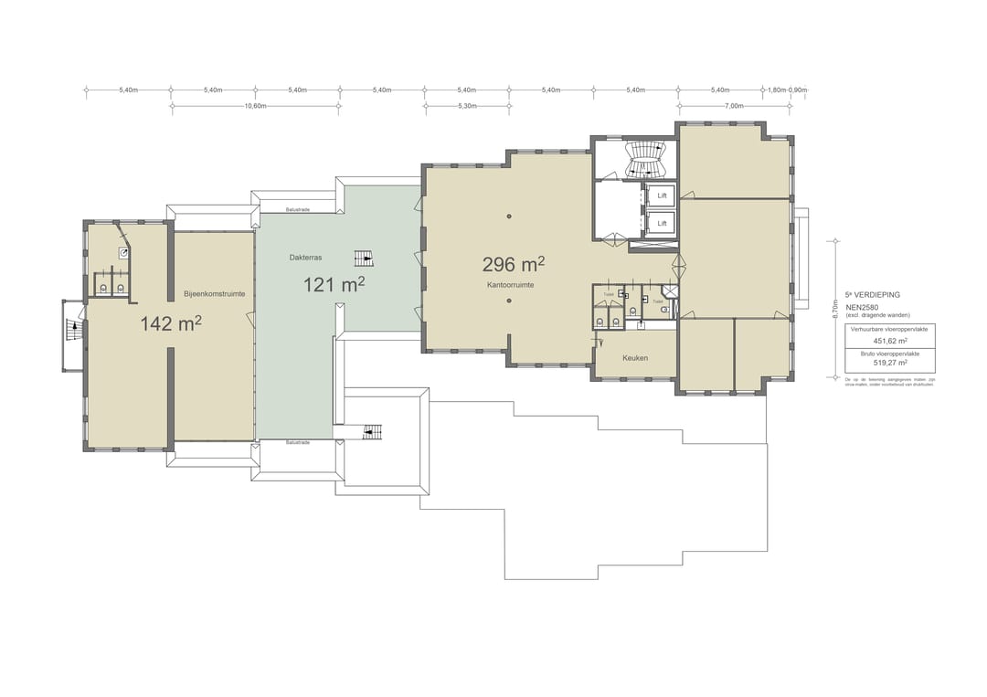 Elke verdieping beschikt over een privé dakterras waarbij de vijfde verdieping zelfs voorzien is van een royaal dakterras van circa 120 m².