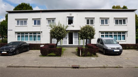 Entreehal met ontvangstruimte - balie functie met trap naar de 1e verdieping. Kantoor - kantine met pantry en eenvoudige sanitaire voorzieningen. Op de 1e verdieping: overloop, eveneens sanitaire voorzieningen en een 3-tal kantoorruimten. De kantoren beschikken over uitstekende daglichttoetreding en hebben prachtig uitzicht.