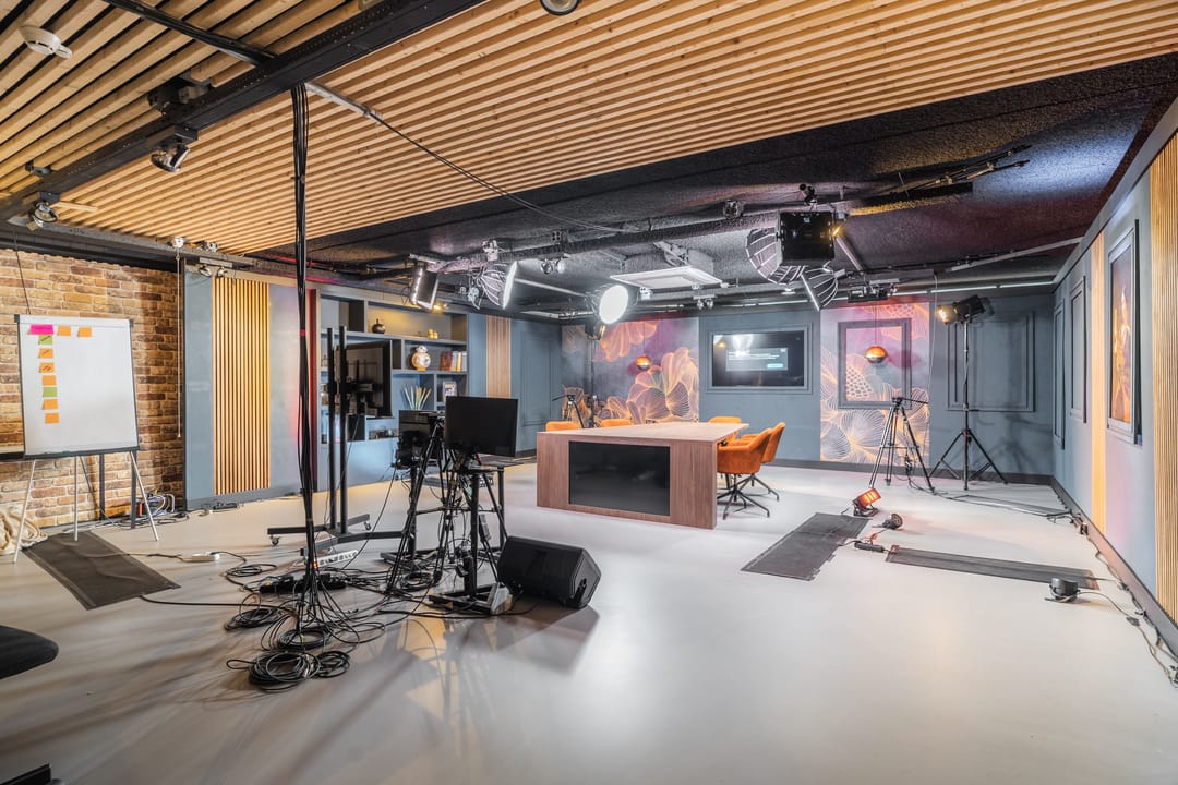 - Kabelgoten aan het plafond voor elektra, data en telefoon, excl. databekabeling;