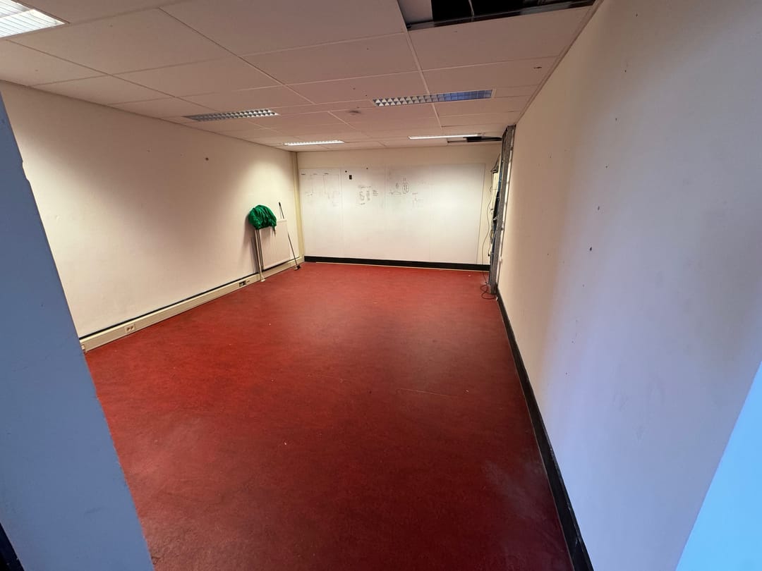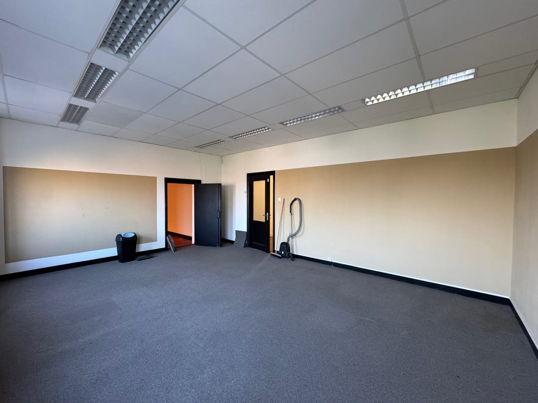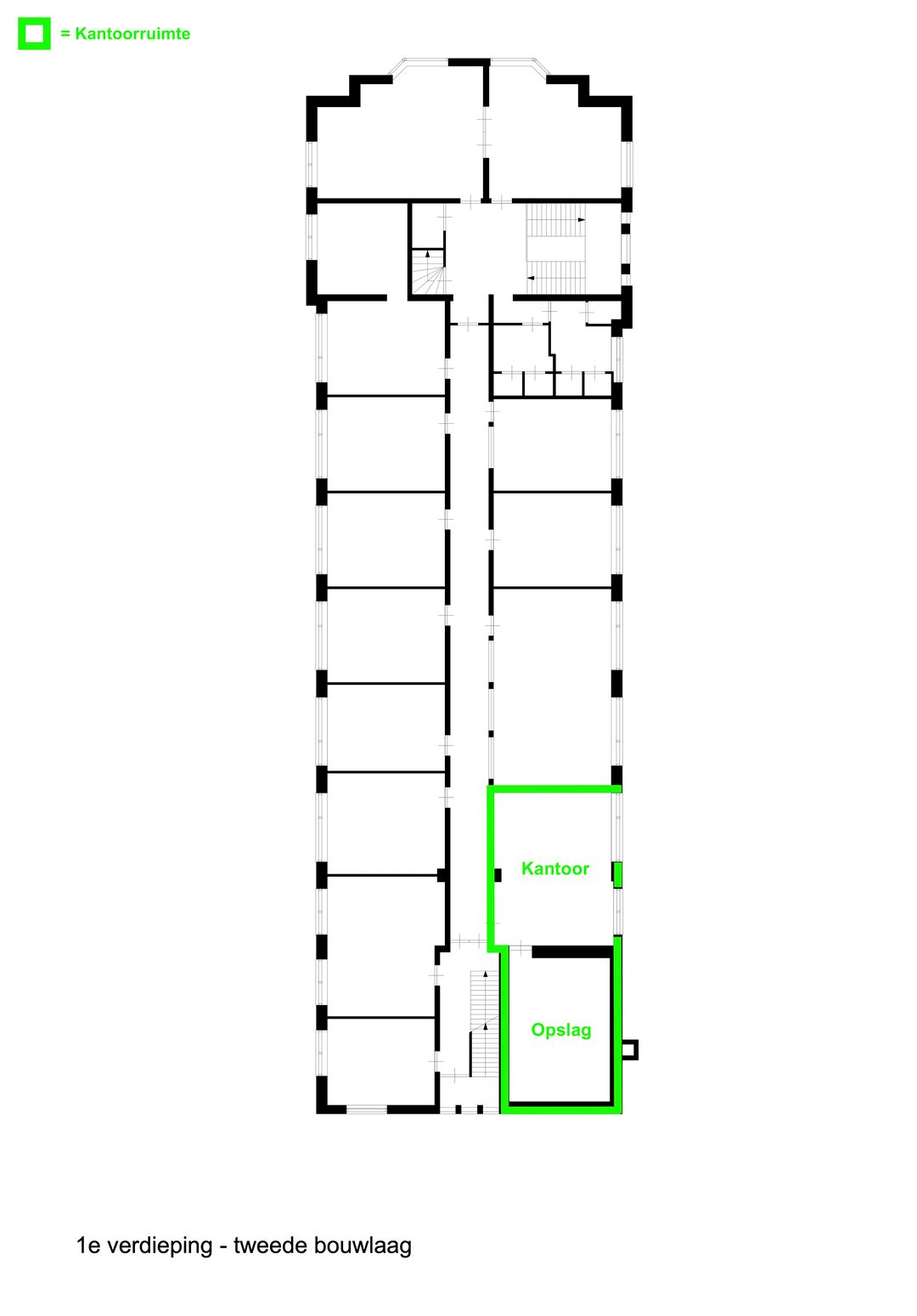 De opslagruimte grenst direct aan het kantoor en is via een interne deur bereikbaar.