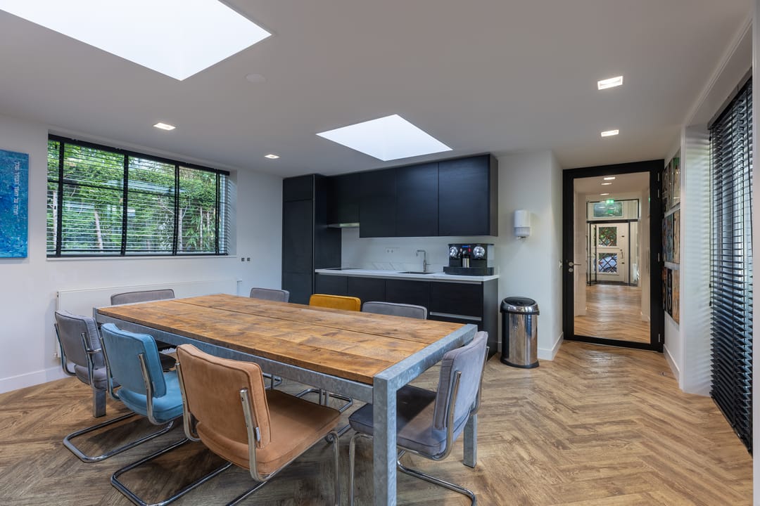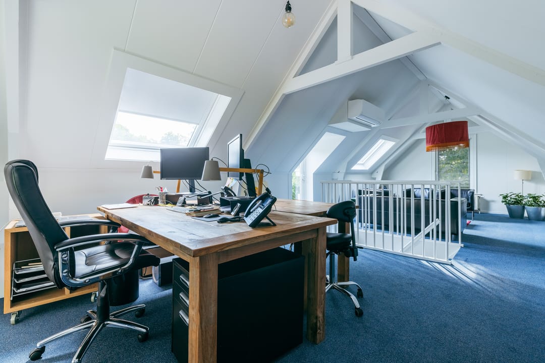 Ruime kantoor-/werkruimte met veel daglicht met airconditioning en toegangsdeur naar het dak.