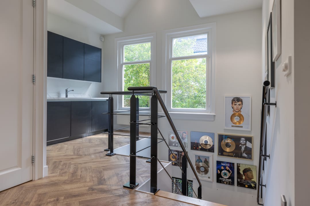 3 lichte werkkamers, een pantry en een tweede toiletgroep.