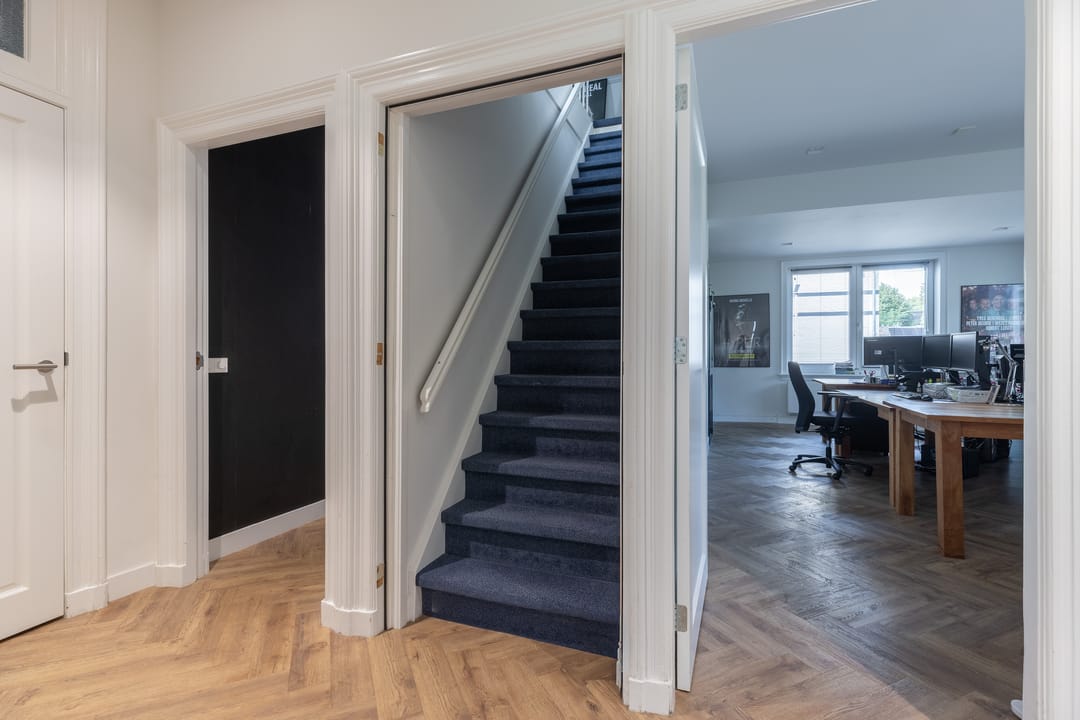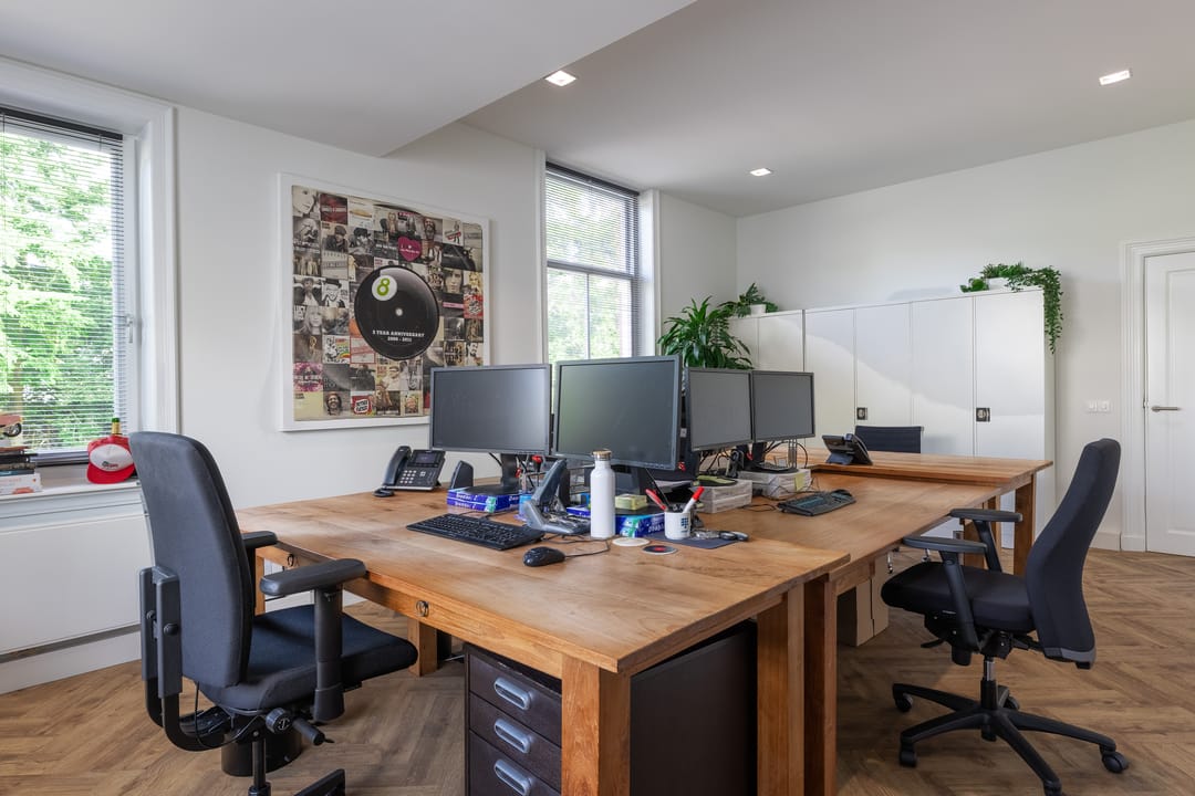 Stijlvol werken in een representatieve en vrijstaande kantoorvilla met moderne voorzieningen, hoge plafonds en veel lichtinval. De villa beschikt over een eigen parkeerterrein aan zowel de voor- als achterzijde, inclusief een laadpaal voor elektrische auto’s.