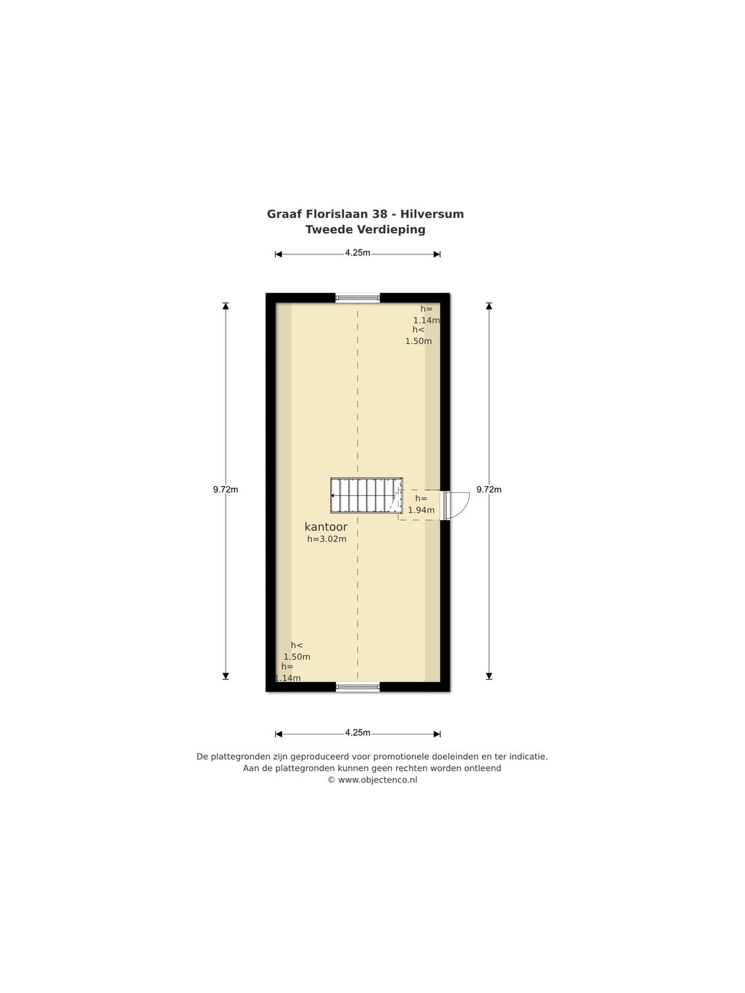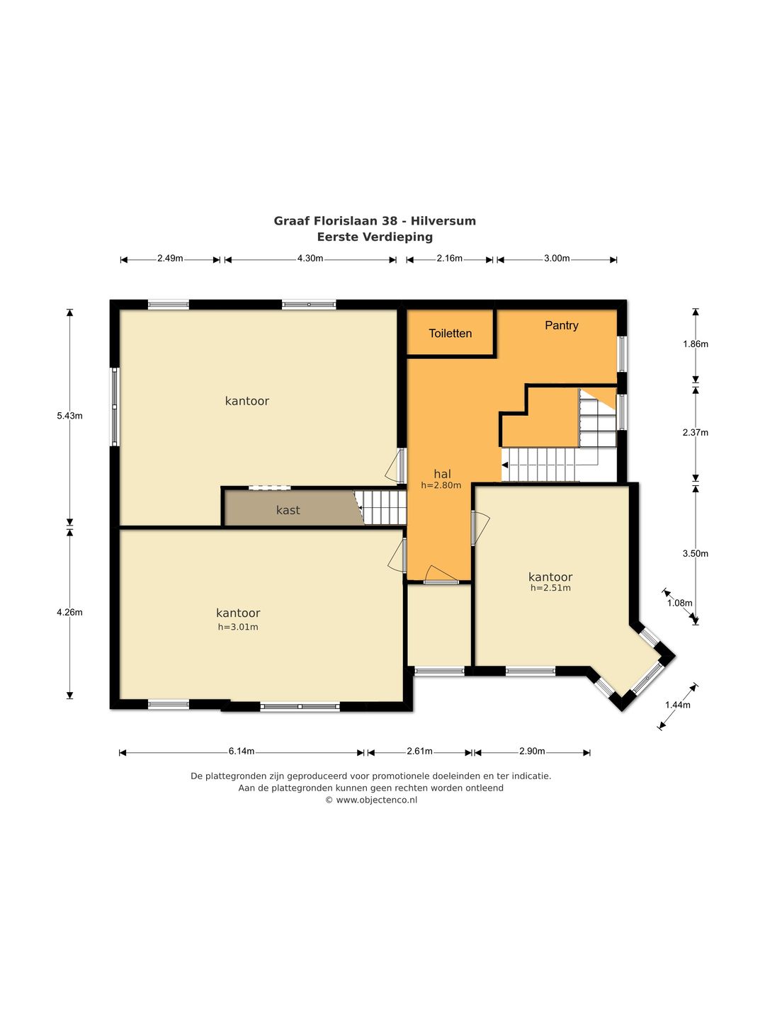 De villa beschikt in totaal over ca. 310 m² kantoorruimte, verdeeld over drie verdiepingen (begane grond, eerste verdieping en kapverdieping).