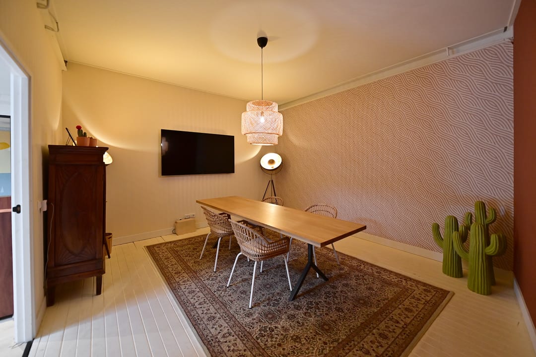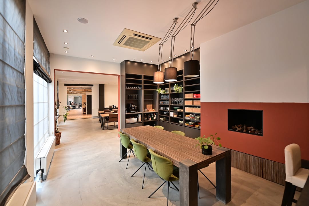 - pantry (v.v. inbouwapparatuur, waaronder wijnkoelkast, Quooker, 5-pits gasfornuis (Smeg) en volautomatische koffiemachine)*.