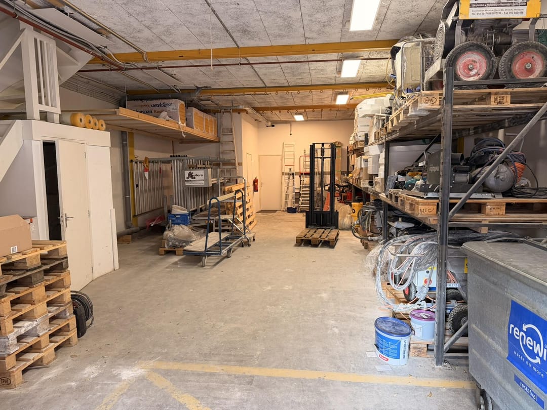 Op de begane grond is een bedrijfsruimte van ca. 102 m² groot gesitueerd met een toegang via een elektrische overheaddeur aan de achterzijde. De bedrijfsruimte is uitermate geschikt voor opslag doeleinden en heeft een doorgang naar de kantoren op de begane grond en eerste verdieping. Er bestaat een mogelijkheid om uitsluitend de kantoorruimte te huren. De bedrijfsruimte blijft dan in gebruik door verhuurder.