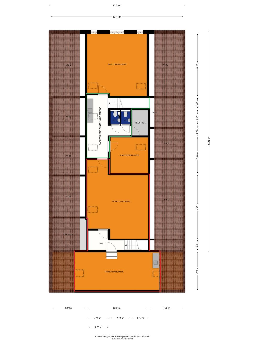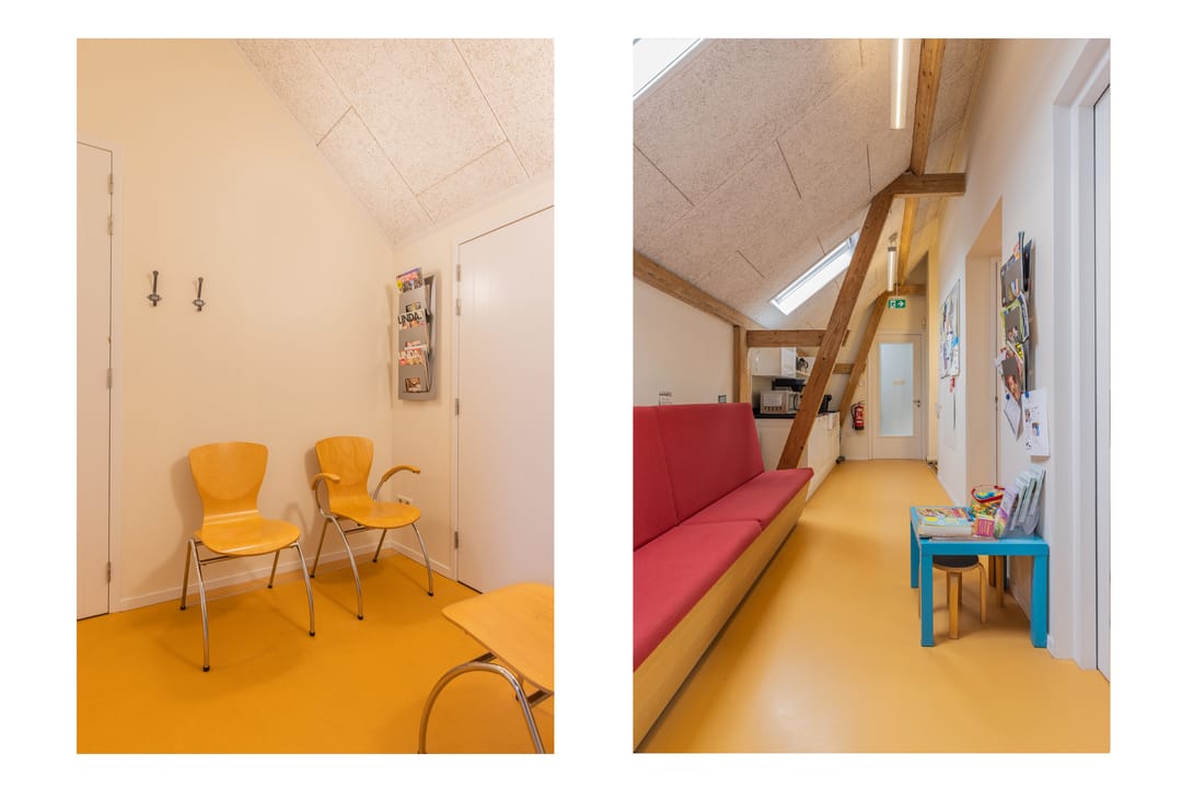Circa 91m² V.V.O. praktijkruimtes gelegen op de 1e verdieping incl. aandeel gemeenschappelijke ruimtes waaronder entree en hal begane grond alsmede pantry en toiletruimte op de 1e verdieping.