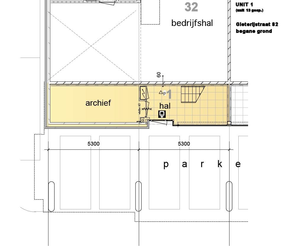 - begane grond: entree/hal met betegelde vloer, stalen bordestrap met hardhouten treden, meterkast en een afsluitbare archiefruimte;