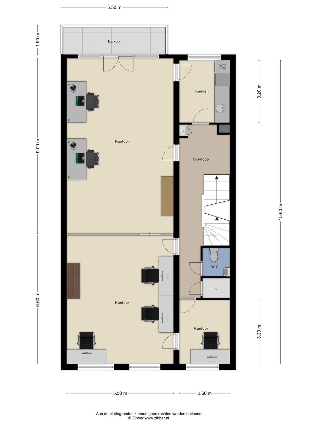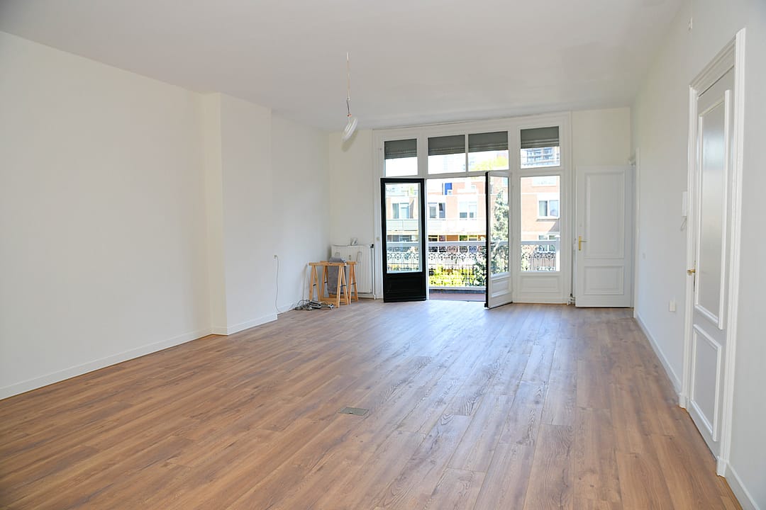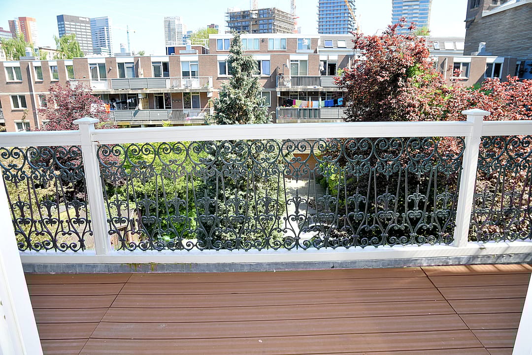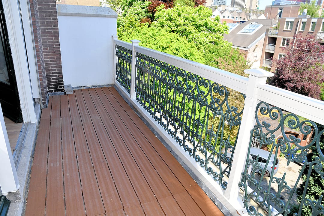 grote lichte kantoorruimte van voor- tot achtergevel (voorkamer 6.6 x 5.5 en achterkamer 9.0 x 5.5) met glazen scheidingswand , openslaande deuren naar zonnig terras ca. 5,5 x 1,5 en schitterend vrij uitzicht over de Westersingel,