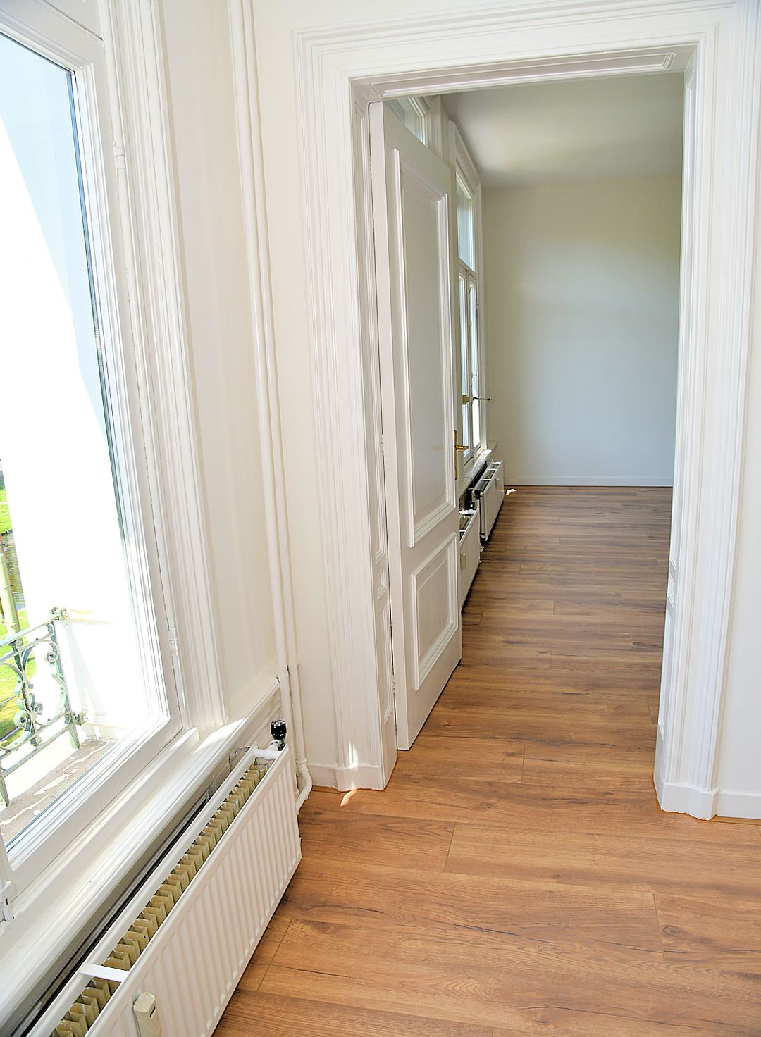 Zowel de met marmer beklede entree als het fraaie trappenhuis en de verdere authentieke details, ademen de sfeer uit van weleer.