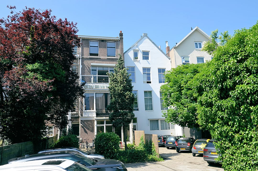 Naast de pp in de achtertuin, zijn er nog aanvullende parkeerplaatsen beschikbaar direct aan de overkant van de singel (Westersingel 101) ad € 2400,- ex BTW p.j.