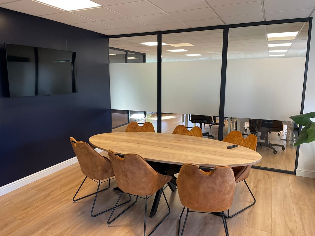 Een belangrijk pluspunt is de aanwezigheid van een aparte spreekkamer. Deze ruimte leent zich uitstekend voor overleg, klantgesprekken of besprekingen die meer privacy vereisen. Daarmee combineert het kantoor het beste van beide werelden: een open werkomgeving en de mogelijkheid om afzonderlijk te werken.