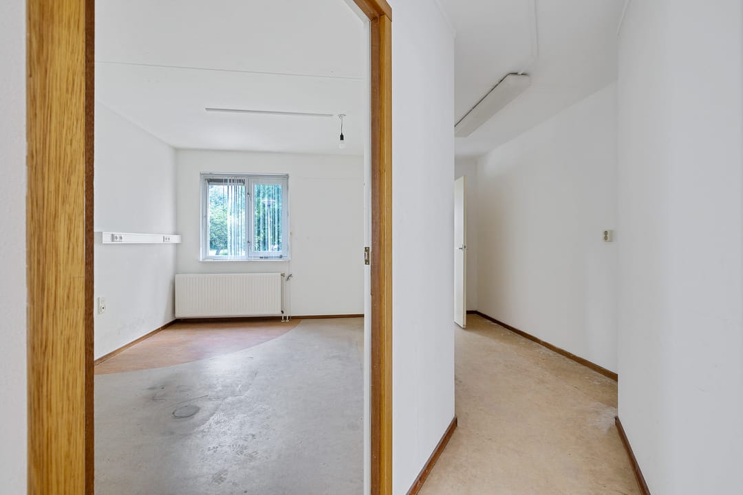 De huidige indeling bestaat uit meerdere kamers, een overblijfsel van de vorige huurder die hier een tandartspraktijk voerde. Deze indeling leent zich uitstekend voor praktijken of kleinschalige kantoren, maar kan – indien gewenst – eenvoudig worden aangepast tot één open ruimte. De binnenwanden zijn namelijk eenvoudig te verwijderen, waardoor u de indeling volledig naar eigen wens kunt realiseren.