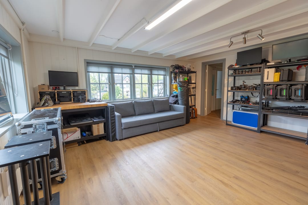 De ruimte is gelegen op de 1ste verdieping en kenmerkt zich door een mooie lichtinval.