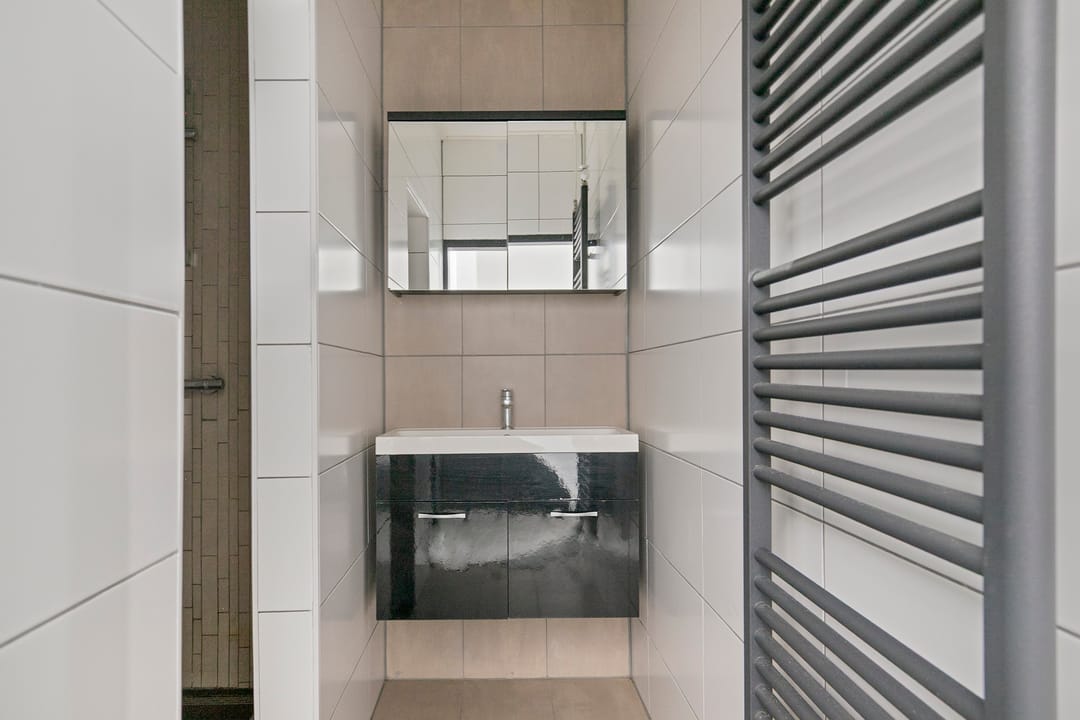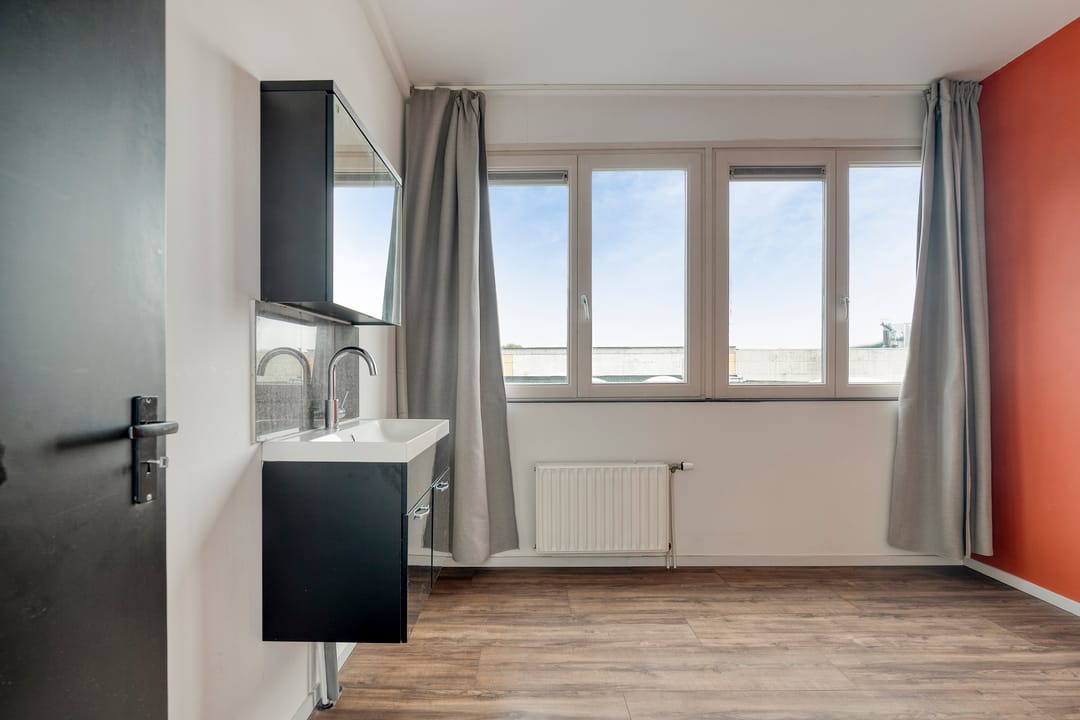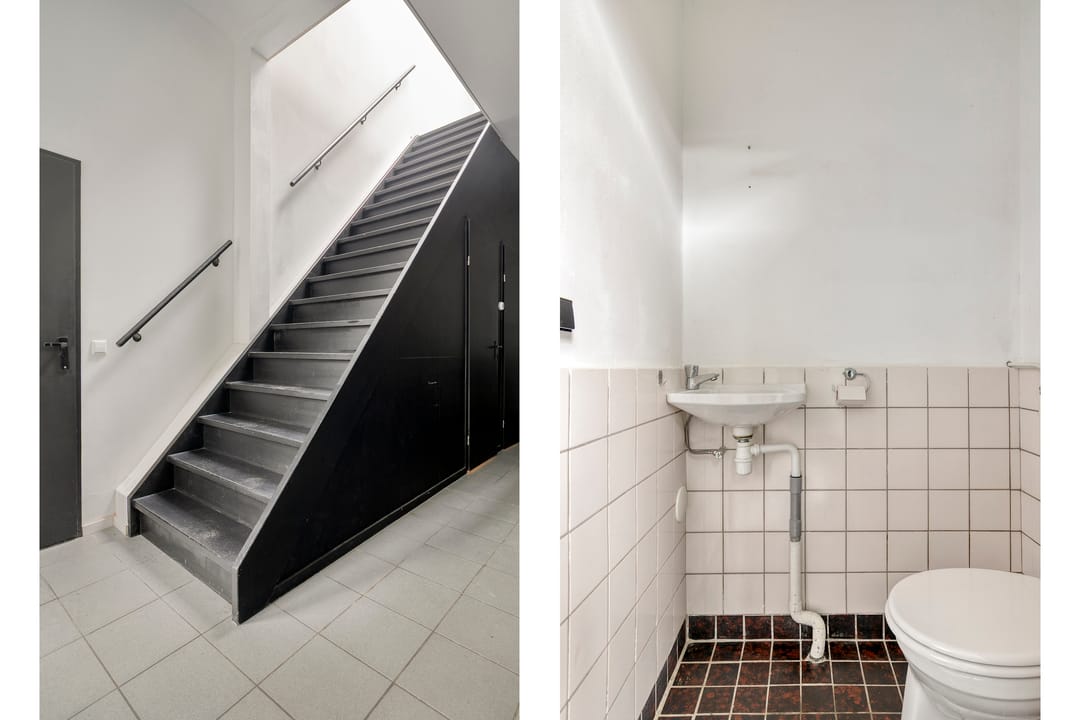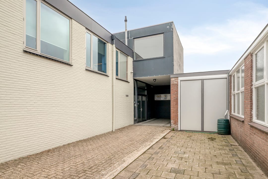 Via de vaste trap bereikt u de verdieping, die bestaat uit een overloop met een royale, lichte kantoorruimte met aan twee zijden grote raampartijen, waardoor er veel natuurlijk daglicht binnenvalt. Daarnaast zijn er twee separate kantoorruimtes, elk voorzien van een wastafelmeubel met spiegelkast en eveneens ruime lichtinval. De indeling maakt dit pand geschikt voor zowel individueel als gezamenlijk werken, met voldoende privacy en comfort.