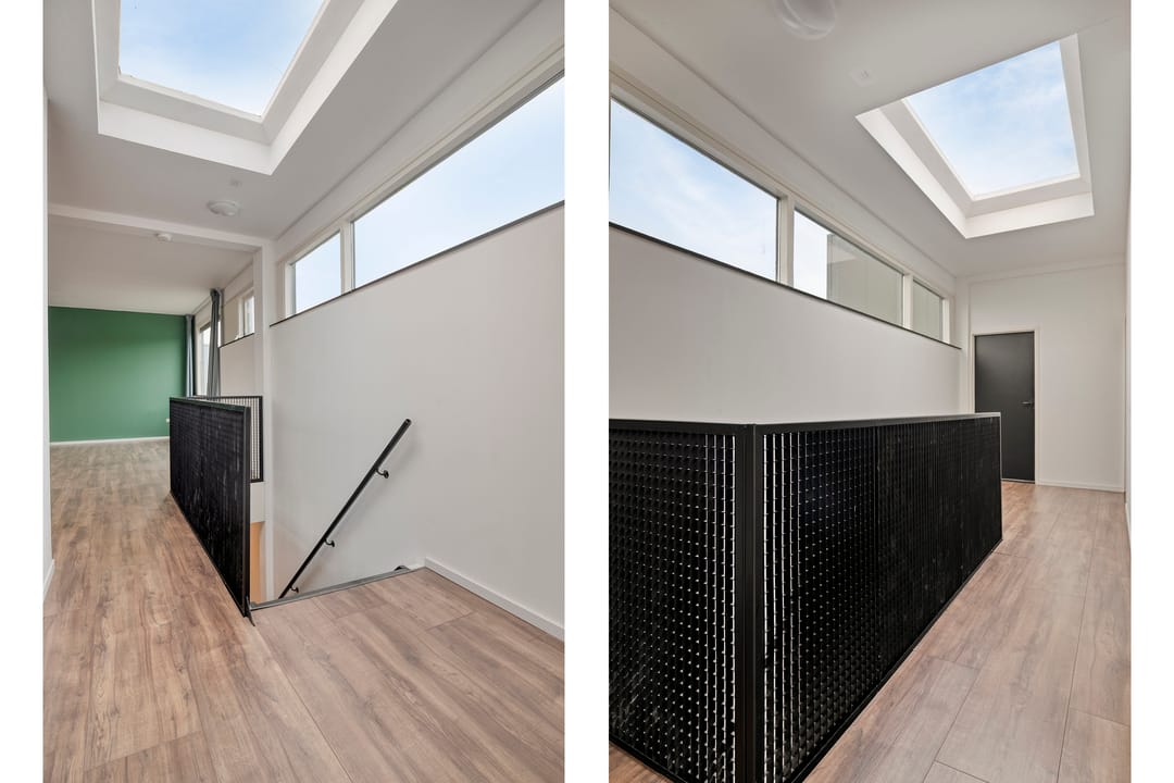 - Lichte en ruime kantoorruimtes op de verdieping met grote raampartijen