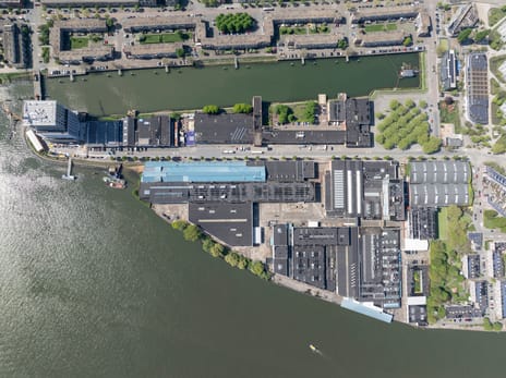 Markant, vrijstaand kantoorgebouw verdeeld over 7 bouwlagen, een aangrenzende bedrijfsruimte voorzien van 2 loading docks en een betonnen verdiepingsvloer.