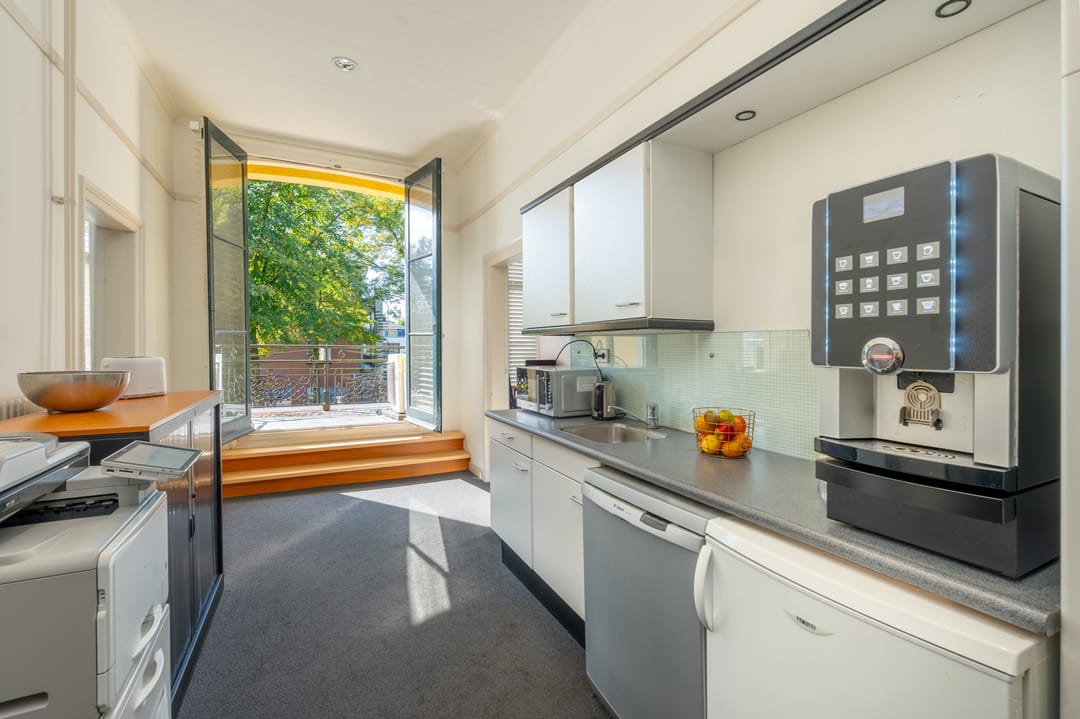 Het pand strekt zich uit over drie elegante bouwlagen, met een karakteristiek koetshuis dat beschikt over een eigen entree. In de royale aanbouw, verdeeld over drie lagen, bevinden zich schitterende kantoorruimtes die comfort en klasse uitstralen.