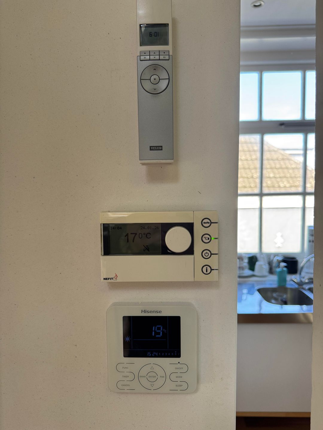 - Air conditioning, mechanical ventilation, windows can be opened, cable ducts, toilet, pantry and heating
