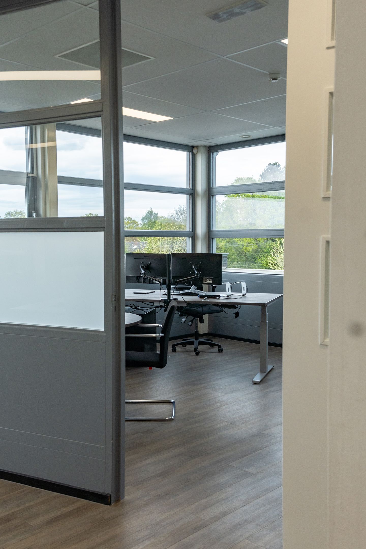 The prominently visible office building is located along a main road in the “De Baarzen” business park in Vught. This business park is situated close to the on- and off-ramps of the A2 motorway (Eindhoven–Amsterdam) and the N65 (Tilburg).