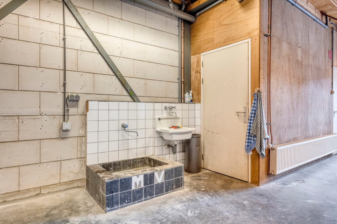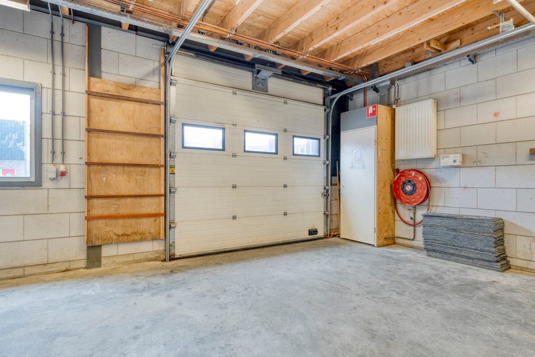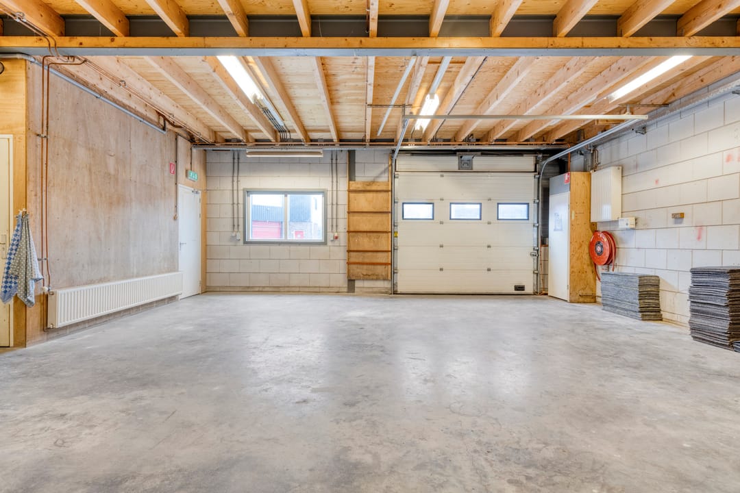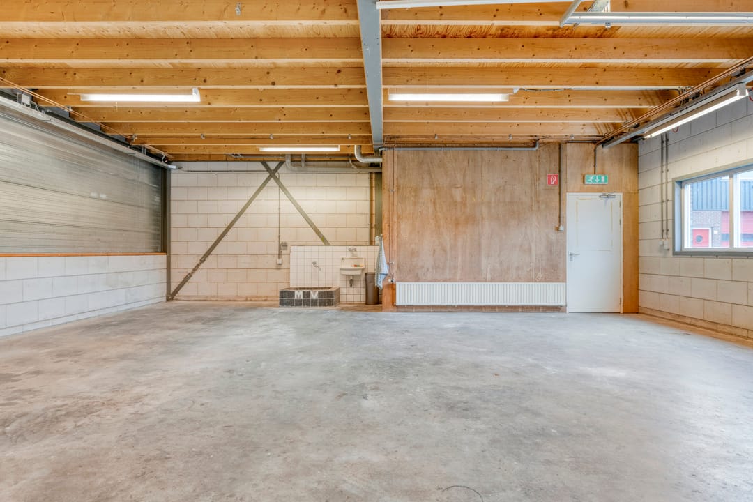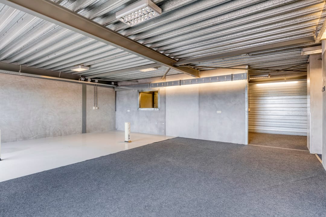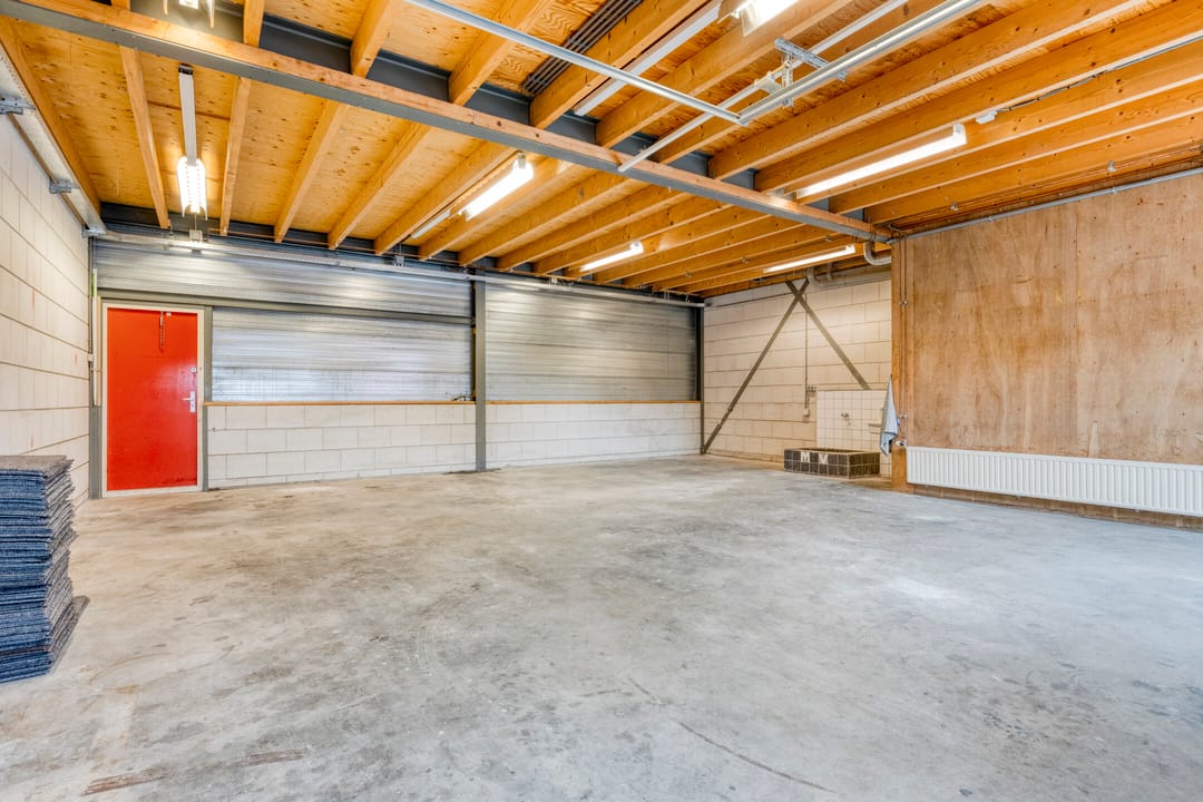 De bedrijfsruimte op de begane grond is voorzien van een onderhoudsvriendelijke betonvloer, een praktische overheaddeur en een separate loopdeur. Daarnaast is er krachtstroom aanwezig en een toilet. Dankzij de hoogte en indeling is de ruimte uitstekend geschikt voor opslag, werkplaats of lichte productie.