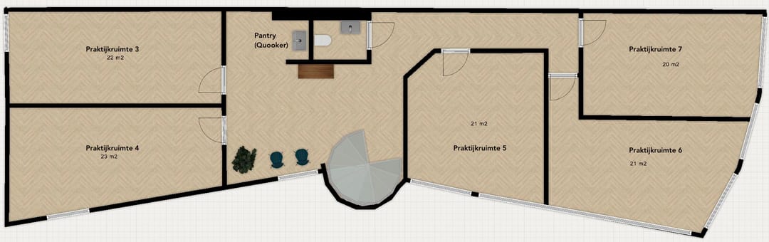 • Praktijkruimte op de begane grond, 22 vierkante meter