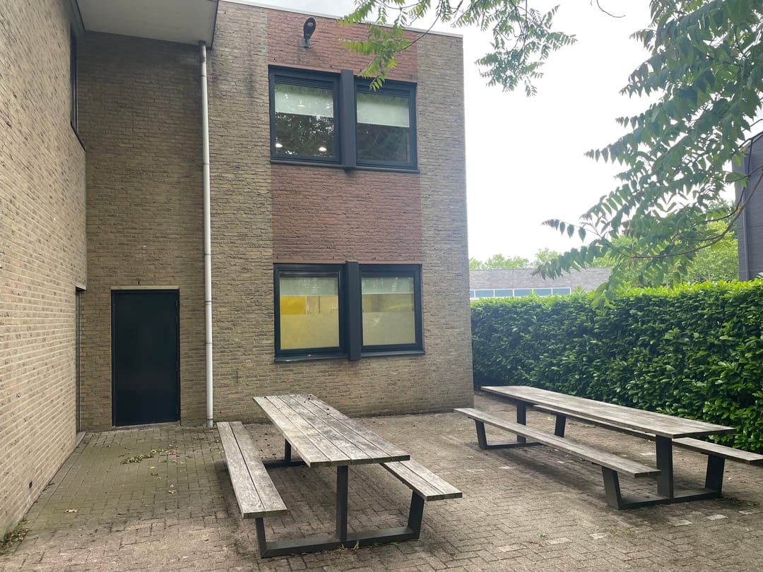 Het buitenterrein is deels verhard met betonklinkers, 25 parkeerplaatsen, deels voorzien van groenvoorziening en een fietsenstalling.