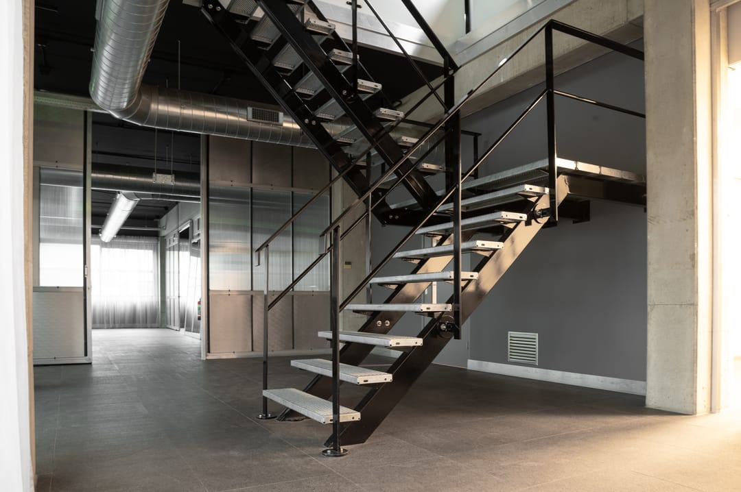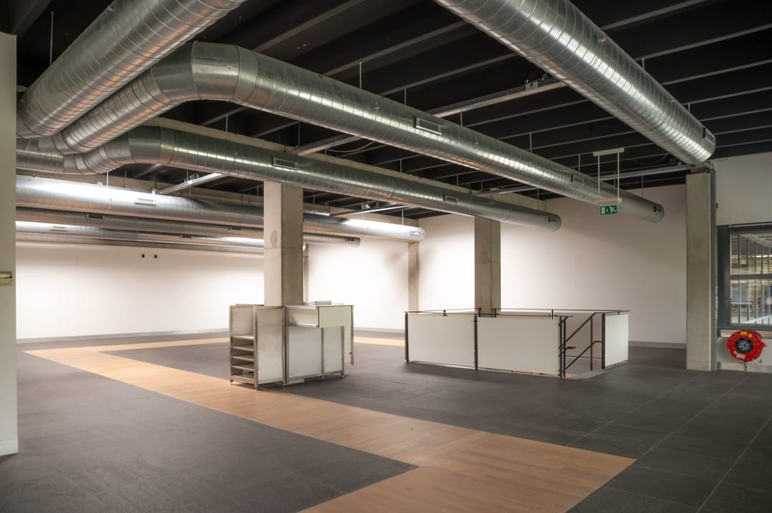 De kantoorruimte op de verdieping is groot 280 m2 VVO. Veel daglicht (onder andere dakkoepels).