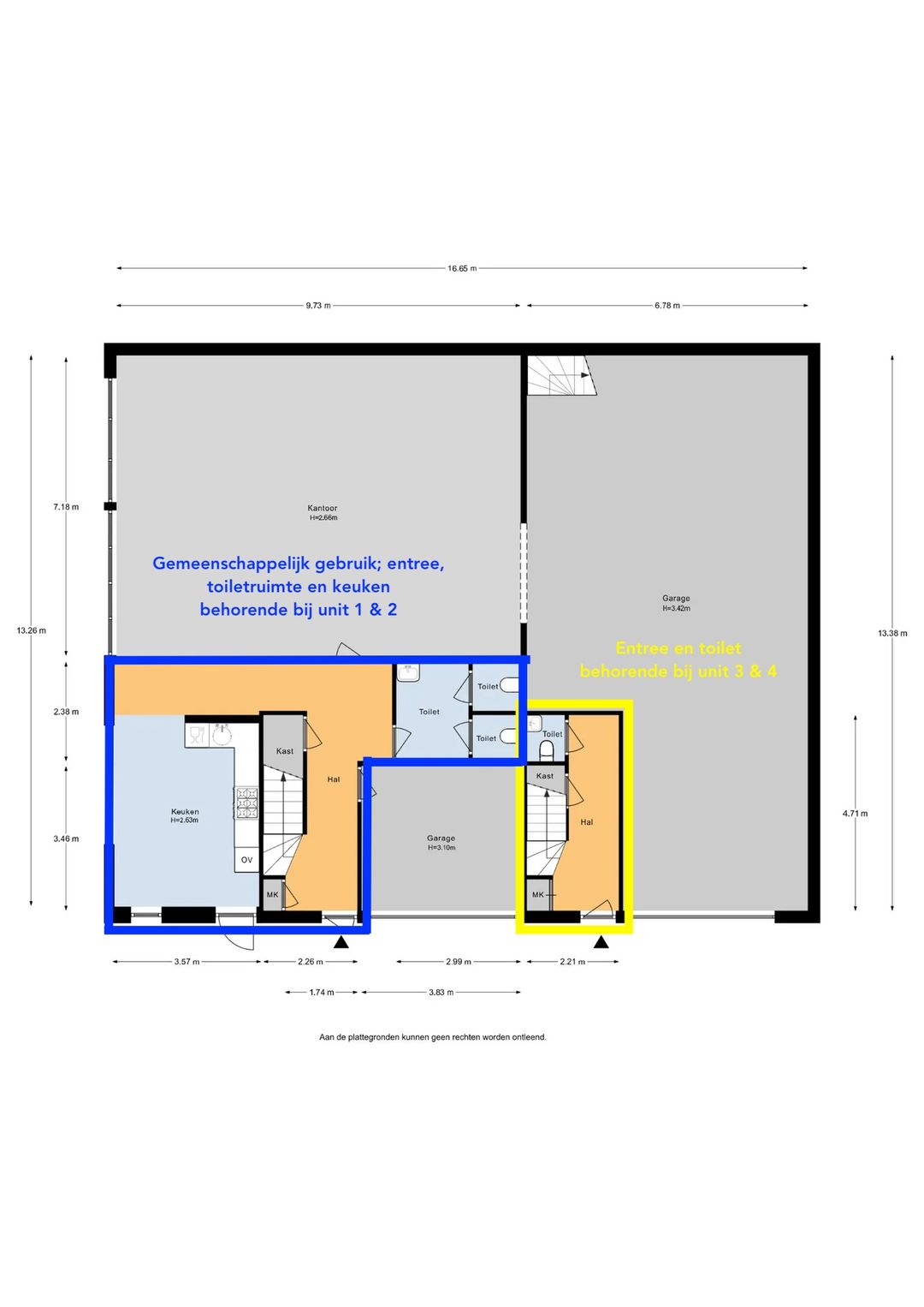 • Gezamenlijke entree en gedeeld gebruik van keuken/kantine en toiletruimten op de begane grond (ca. 42 m², samen met Unit 1)