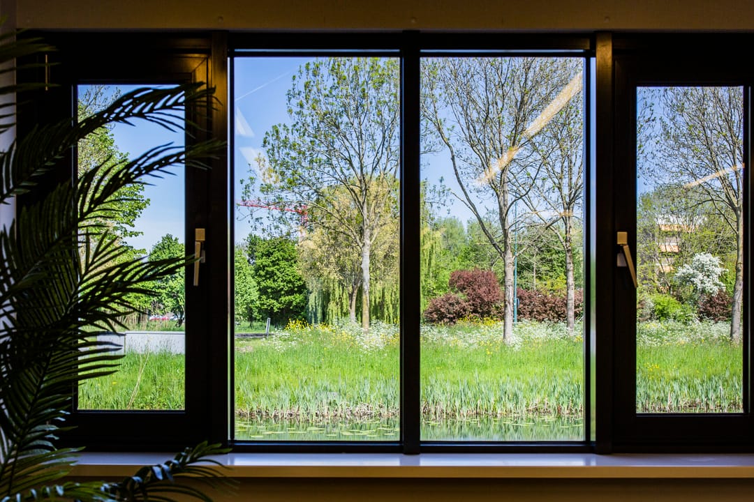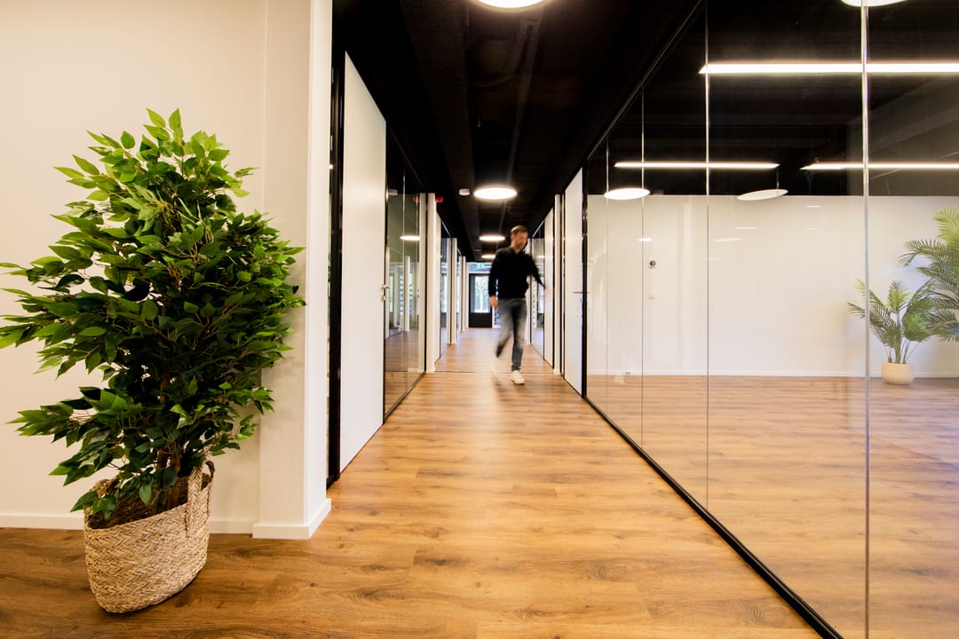 - huidige scheidingswanden: enkelglaswanden 40DB met zwarte profielen en zwarte HPL-deuren met valdorpel;