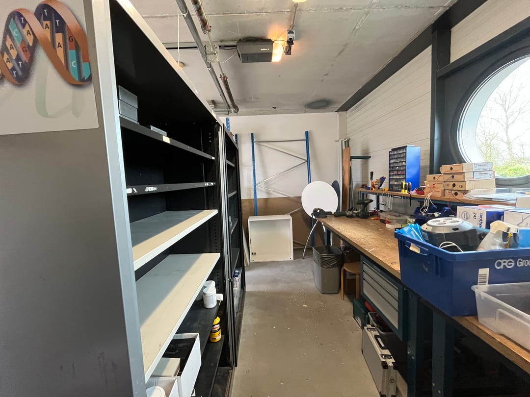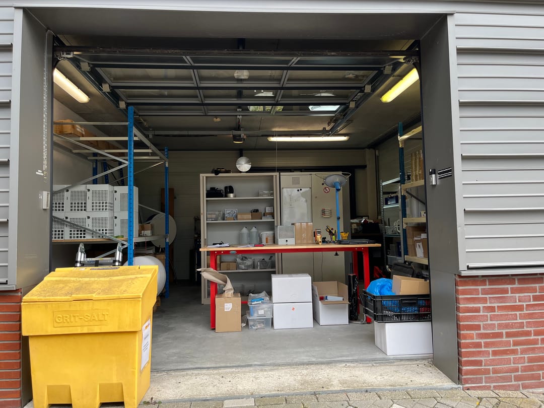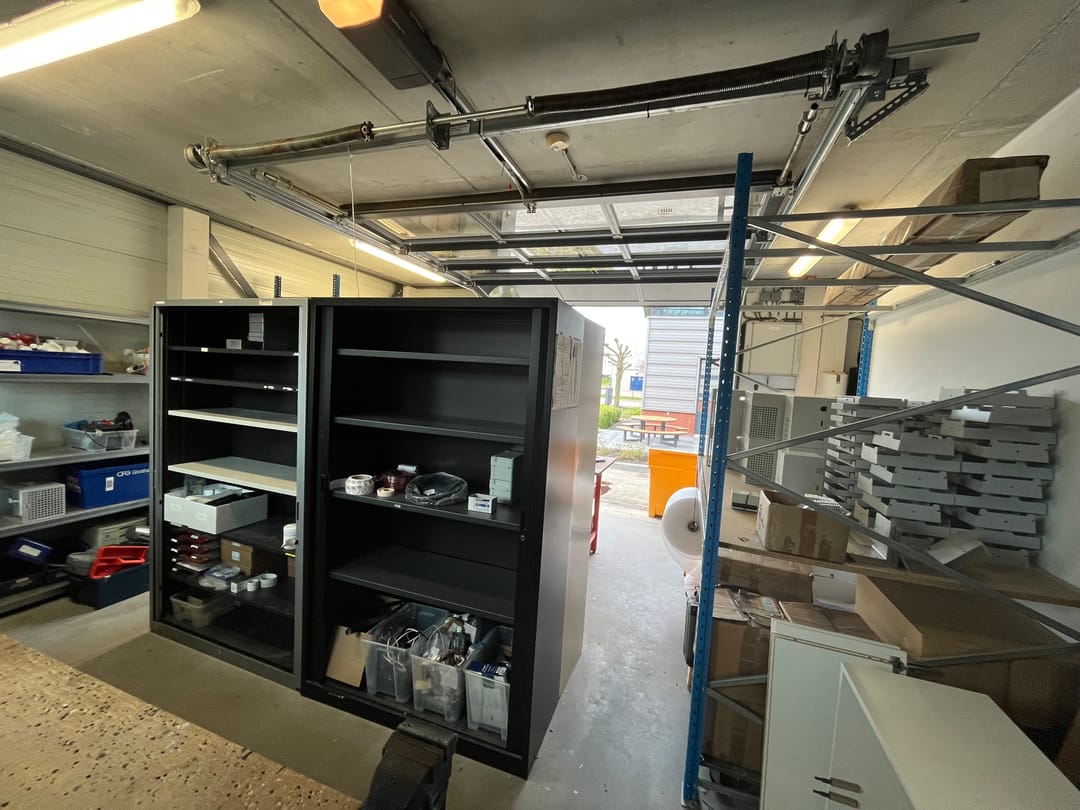 Daarnaast is de ruimte tevens rechtstreeks toegankelijk via de buitenzijde middels een elektrisch bedienbare overheaddeur. Deze entree is uitgerust met een deurbel en een codeslot, wat zorgt voor extra gebruiksgemak.