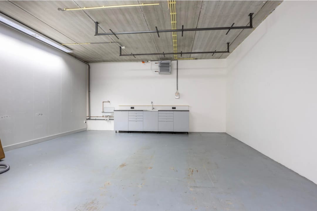 Het pand is slim ingedeeld over drie bouwlagen, waardoor werken en opslag/productie uitstekend gescheiden kunnen worden:
