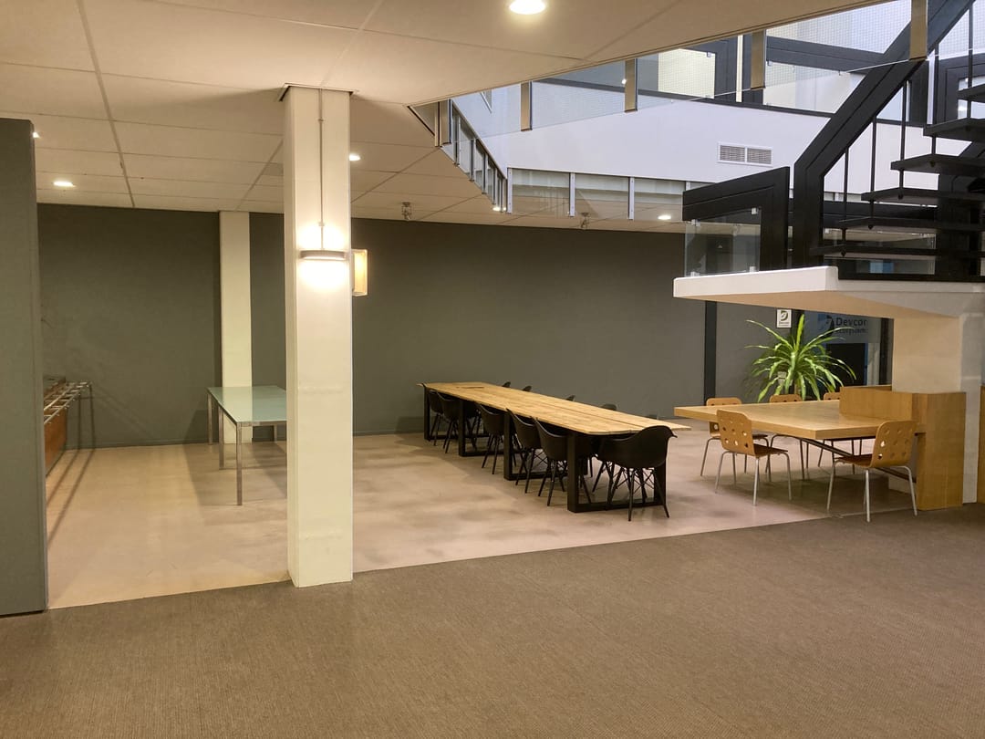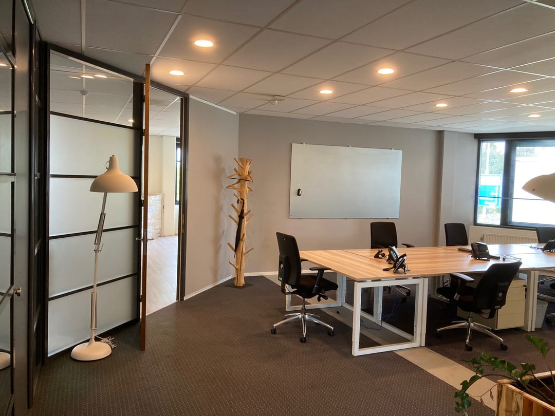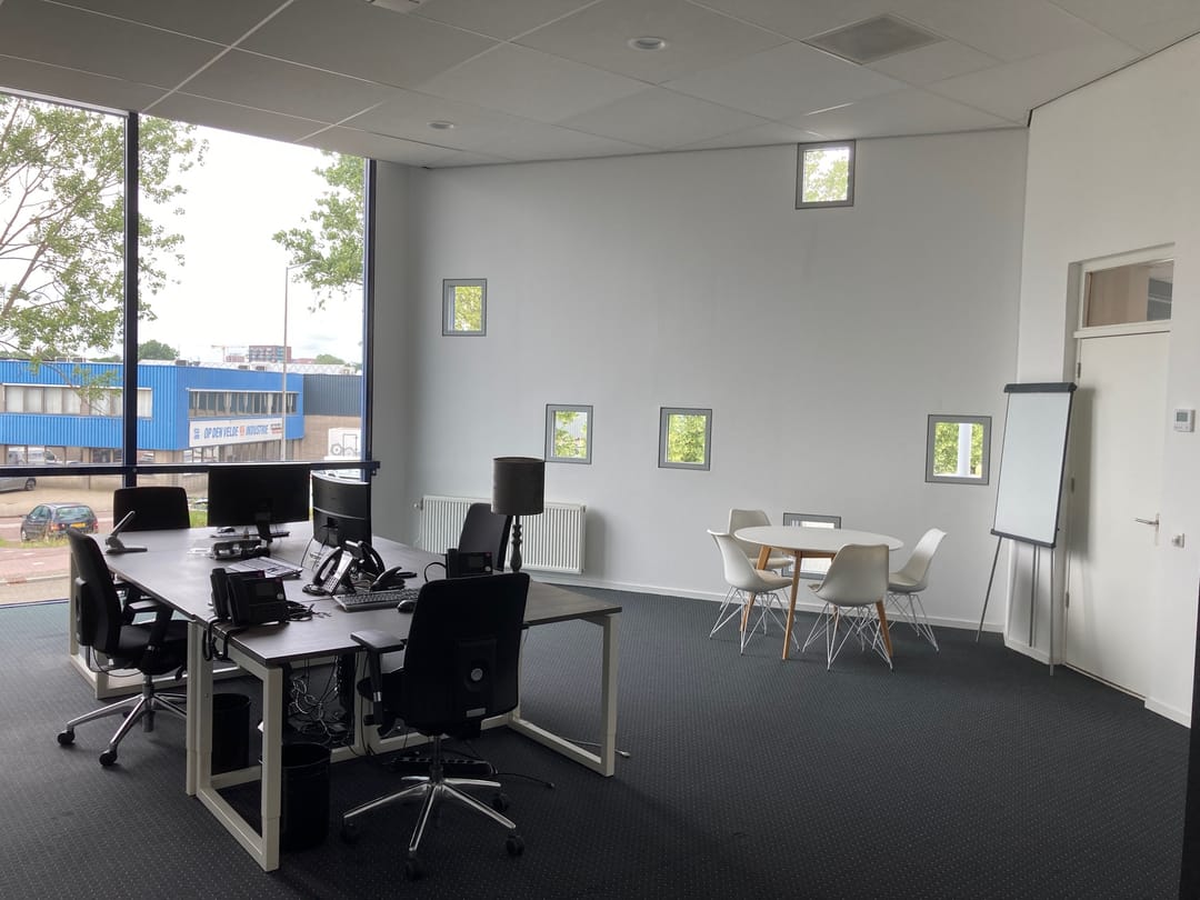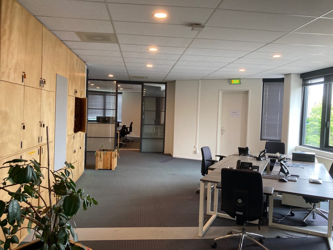 The office has a lot of light through the high windows and has a nice free height, creating a spacious atmosphere.