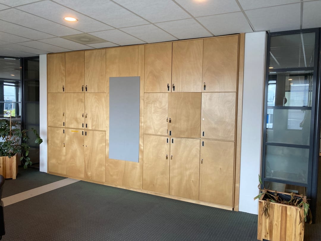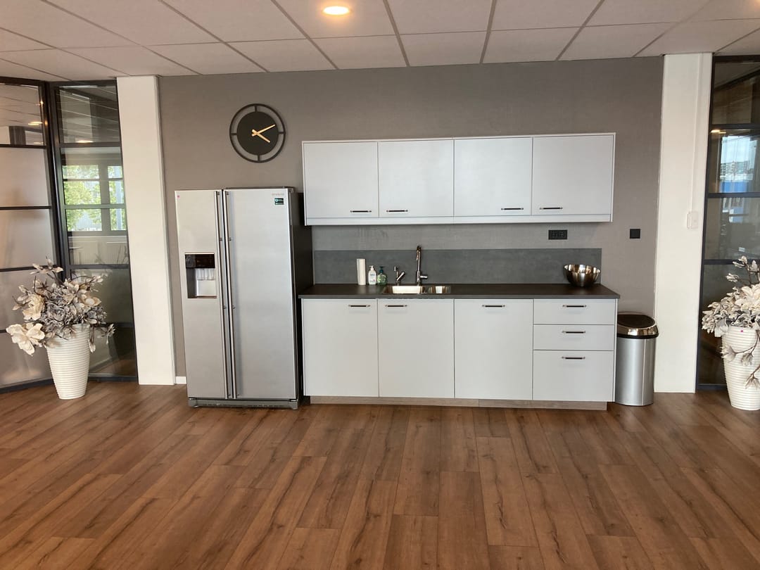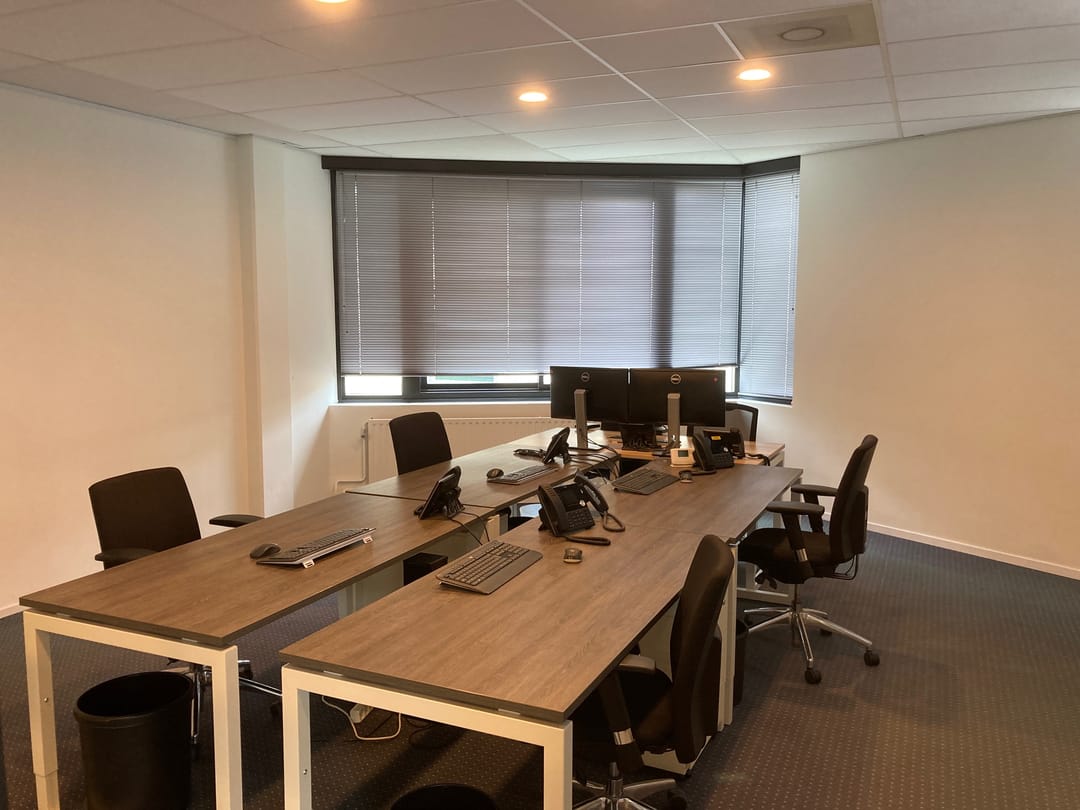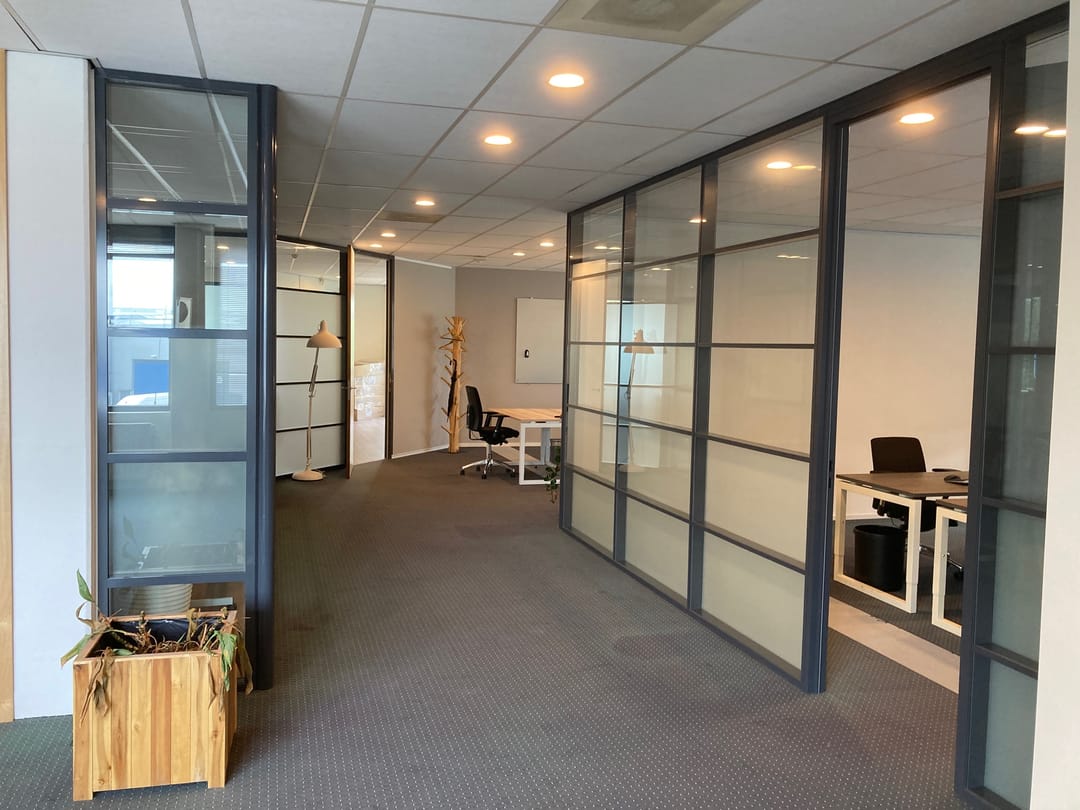 The office has a lot of light through the high windows and has a nice free height, creating a spacious atmosphere.