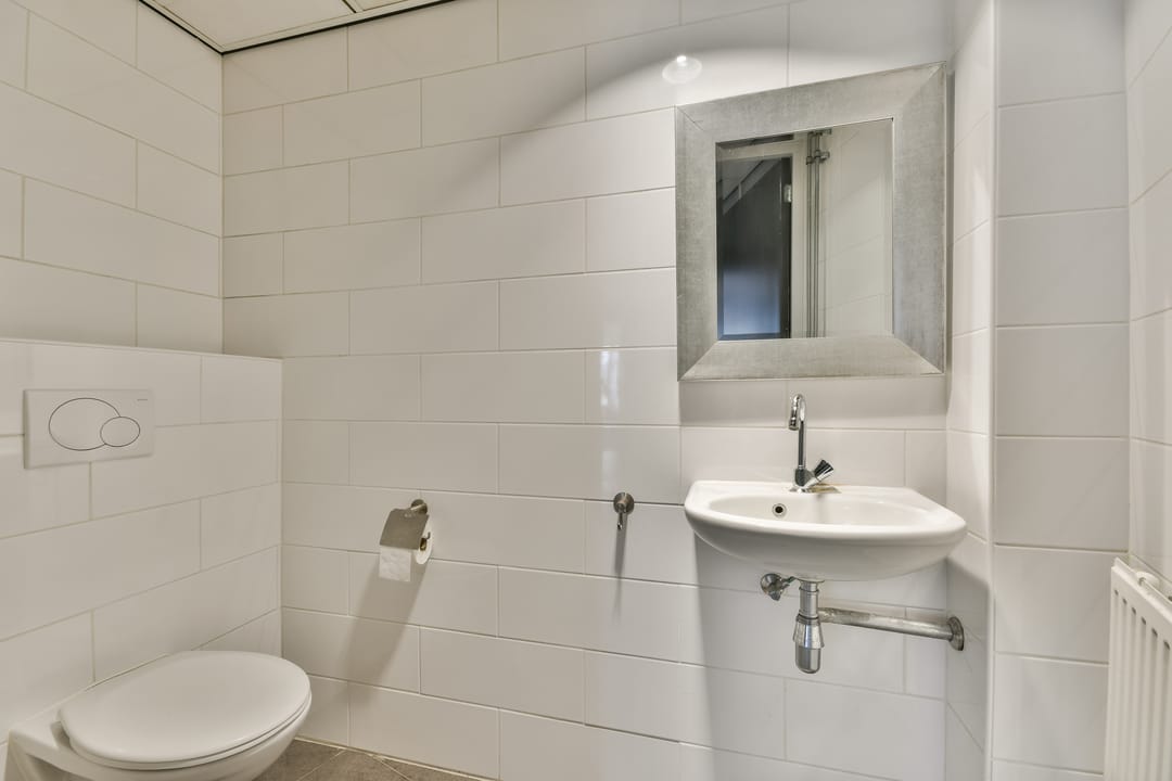 Tenslotte is er gangetje met wederom een speels rond raam naar een afgesloten ruimte met een pantry en een toiletruimte met fonteintje.