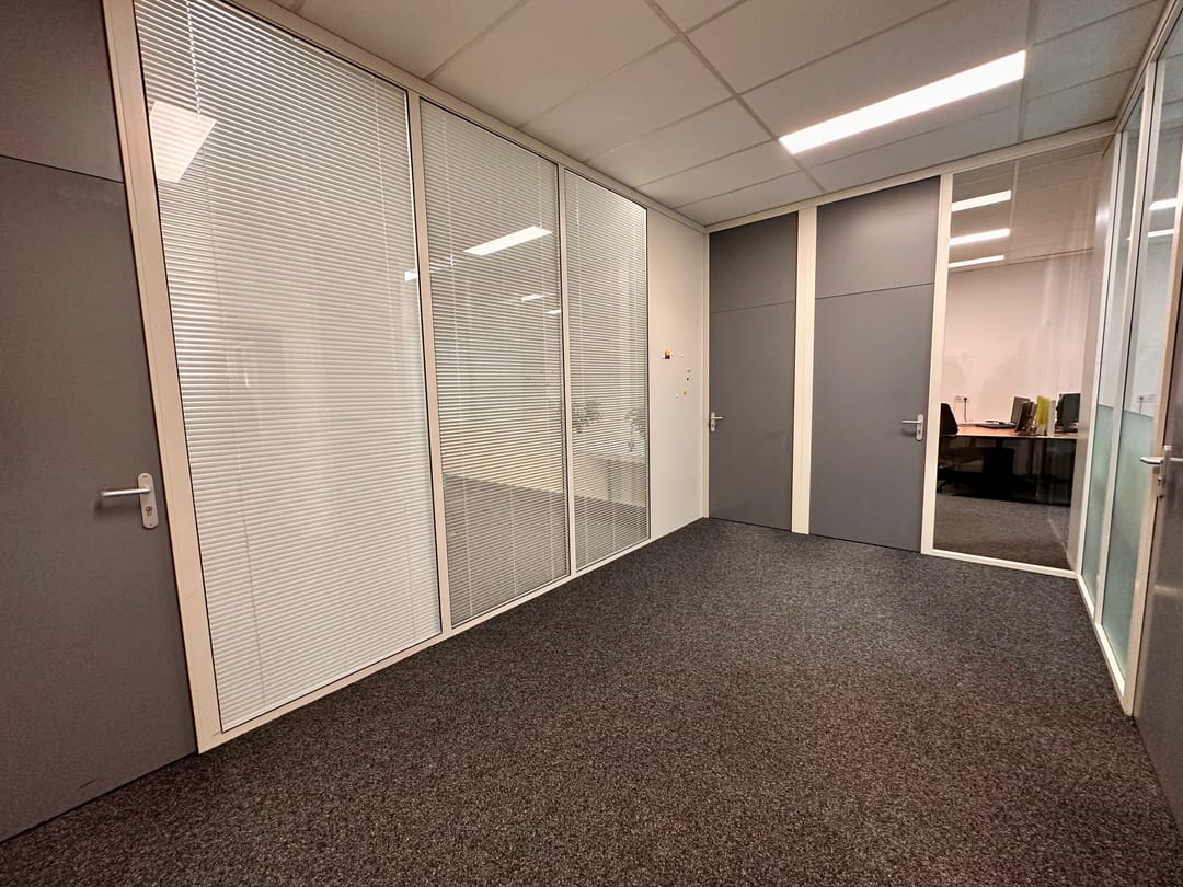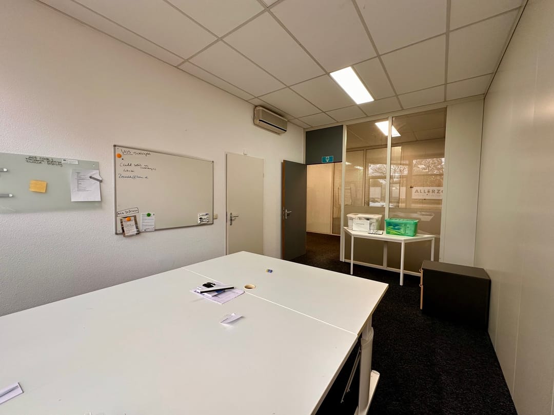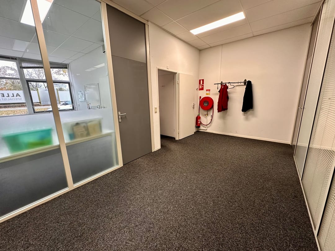 Indeling: entree met hal en meterkast, berging c.q. technische ruimte waarin c.v. installatie, toiletruimte, pantry en vier royale kantoorkamers. In 3 van de 4 kantoorruimte zit airco.