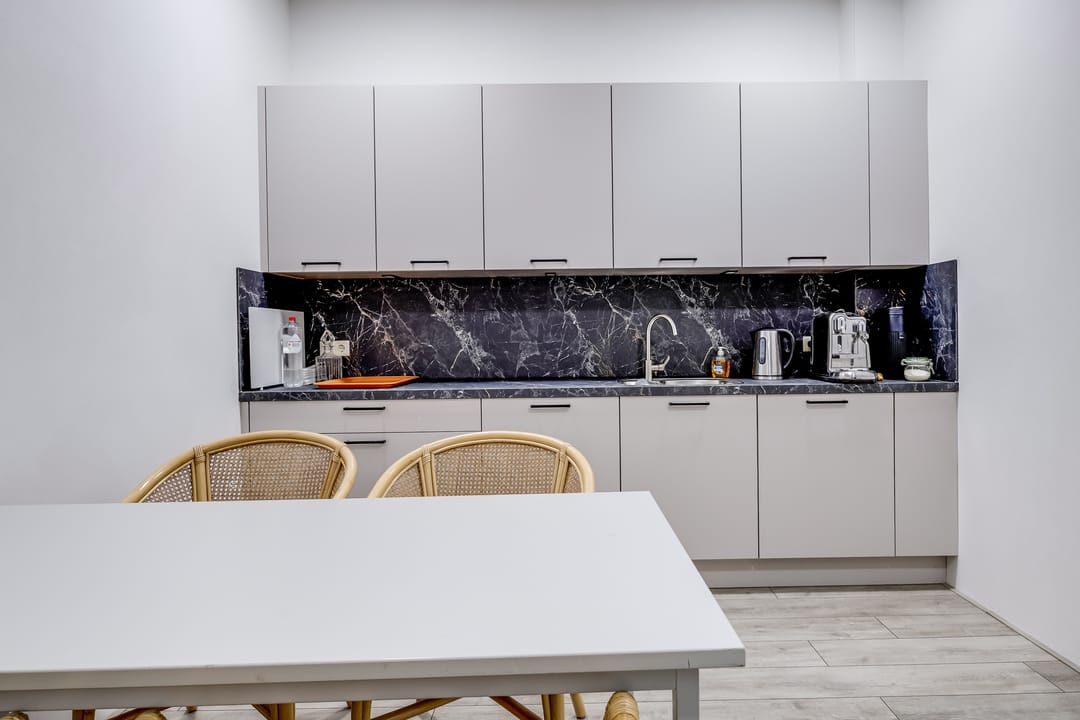 - Mechanical ventilation, built-in fittings, windows can be opened, cable ducts, modular ceiling, toilet, pantry, heating and room layout
