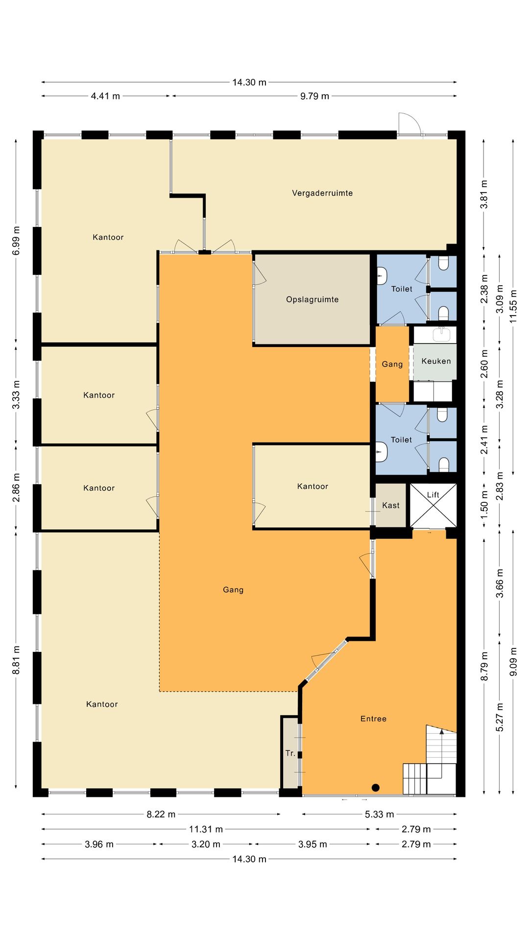 - ca. 296 m² b.v.o. kantoorruimte (incl. toerekening algemene ruimte)