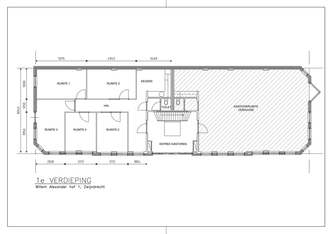 Gelegen aan Willem Alexanderhof 1/hoek Burgemeester de Bruïnelaan 14 representatieve kantoorruimte van respectievelijk ca. 100m² gelegen pal in het hart van Zwijndrecht bestaande uit vijf ruime spreekkamers, toilet, keuken en wachtruimte. De kantoorruimte bevindt zich op de eerste verdieping van een kleinschalig en goed onderhouden kantorencomplex. De locatie is bijzonder centraal, met alle voorzieningen binnen handbereik. De ruimtes hebben veel daglichttoetreding, wat zorgt voor een prettige en lichte werkomgeving