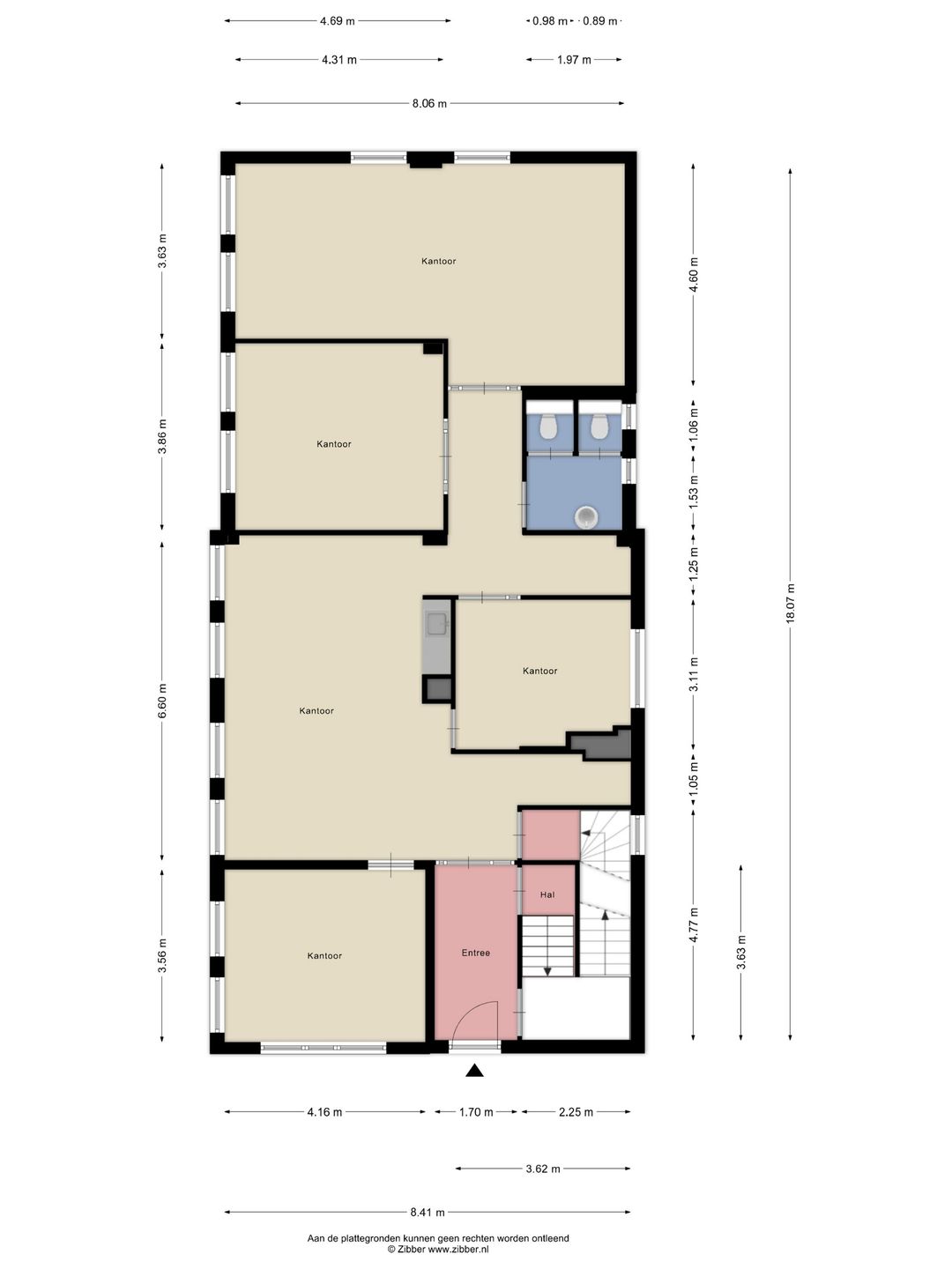 - Entree met toegang tot de kantoorruimte begane grond en trap naar verdiepingen;