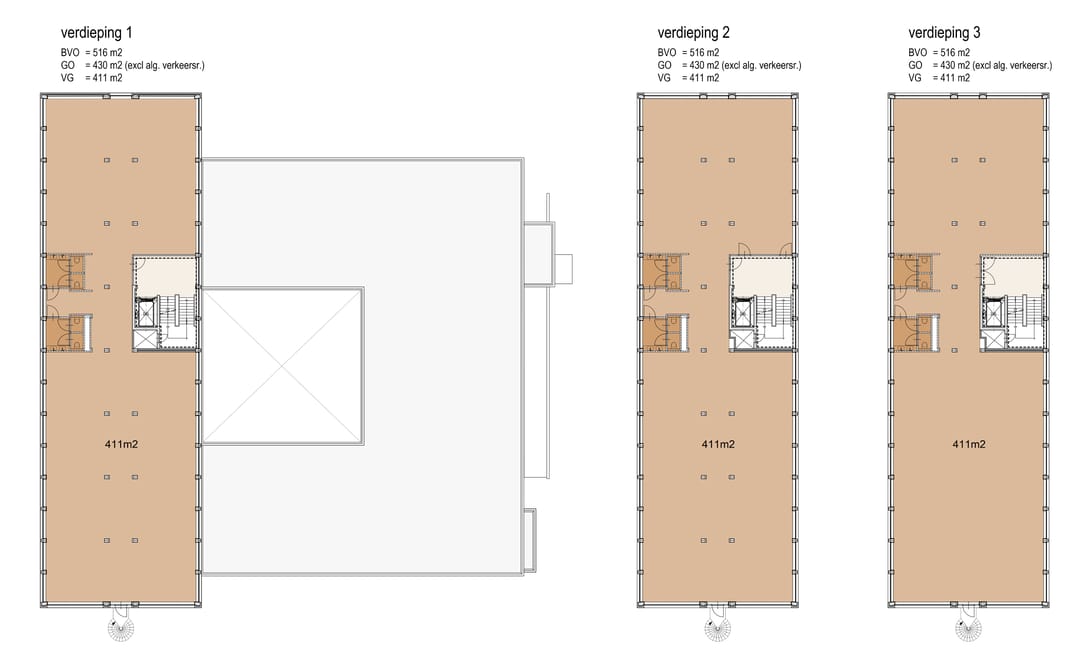 Voor verhuur is momenteel 646,32 m² beschikbaar, als volgt per verdieping verdeeld, waarbij deelverhuur vanaf ca. 179 m² tot de mogelijkheden behoort: