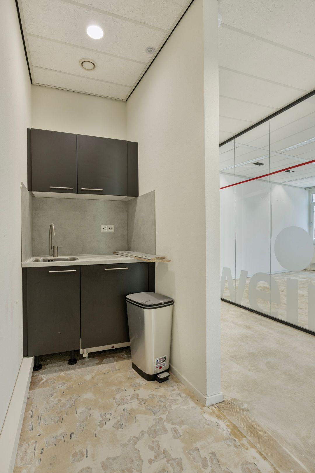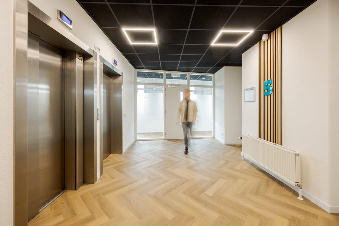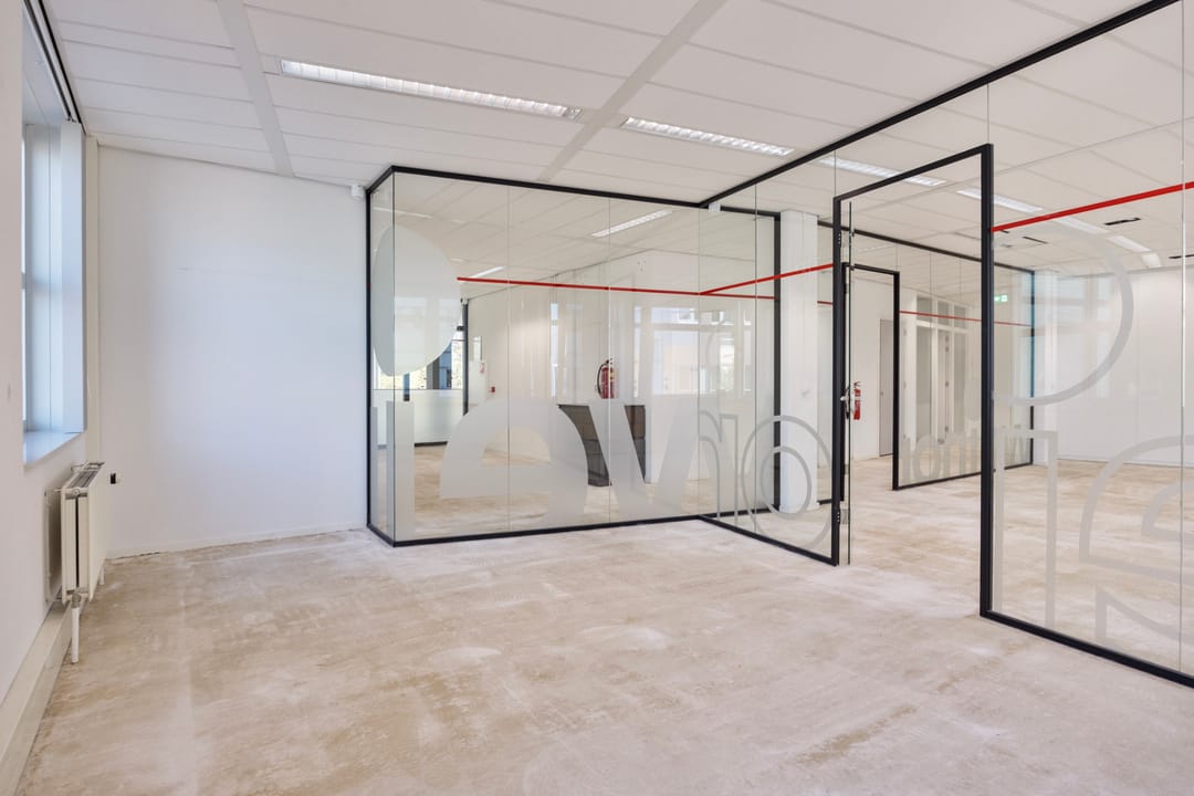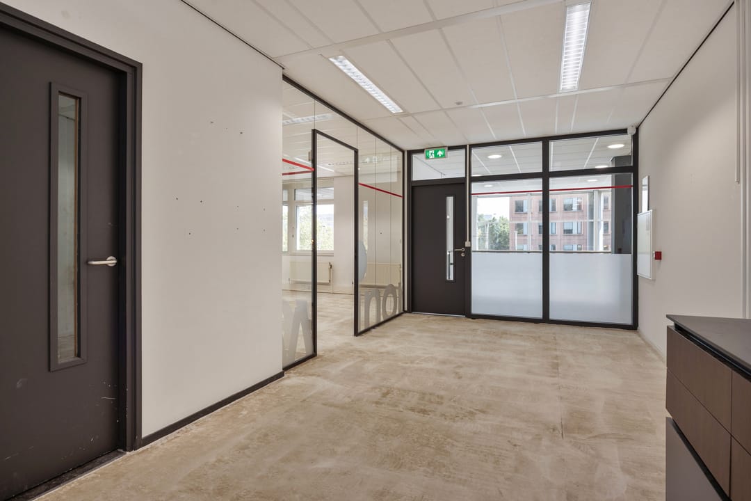 De kantoorruimte is op moment nog niet voorzien van vloerbedekking, maar in overleg met u als huurder wordt deze unit voorzien in de door u gewenste vloer!