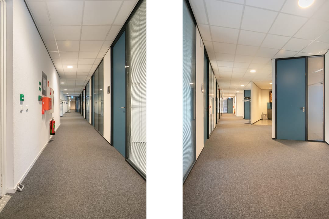De kantoorvertrekken worden aangeboden inclusief een aandeel in de algemene ruimte, dit bestaat onder andere uit: gezamenlijke entree en kantine op de begane grond, pantry op elke vleugel, toilet voorzieningen en de verschillende gangzones.
