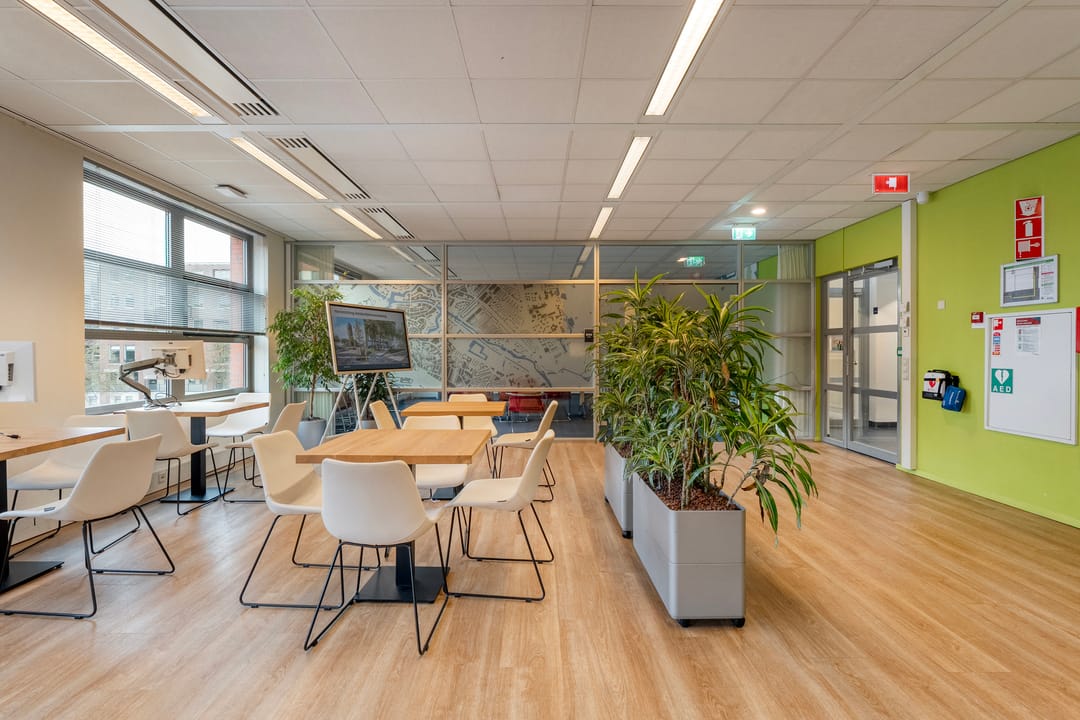 Binnen het gebouw komt per 1 januari 2027 een kantoorvloer beschikbaar op de 1e verdieping ter grootte van ca. 864 m2 VVO. De kantoorruimte is voorzien van een hoogwaardig en compleet inbouwpakket onder meer bestaande uit een indeling met een aantal vergaderruimten en een kantine met pantry en een groot dakterras!