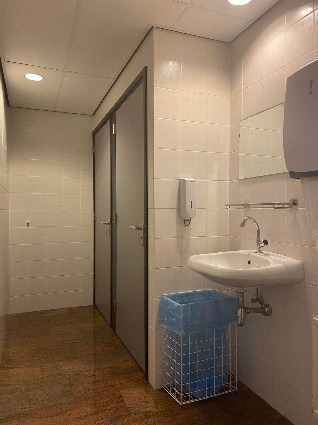 - toiletgroep dames en heren gescheiden alsmede een invalidetoilet op de begane grond