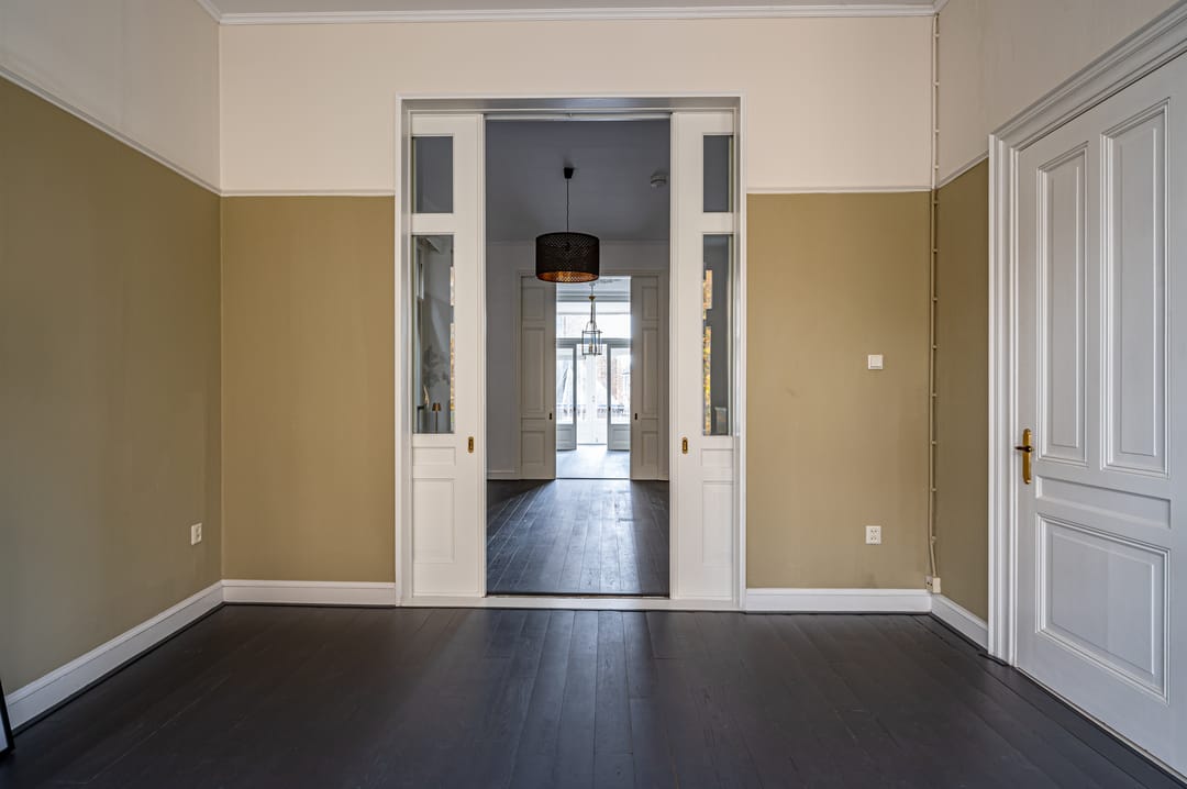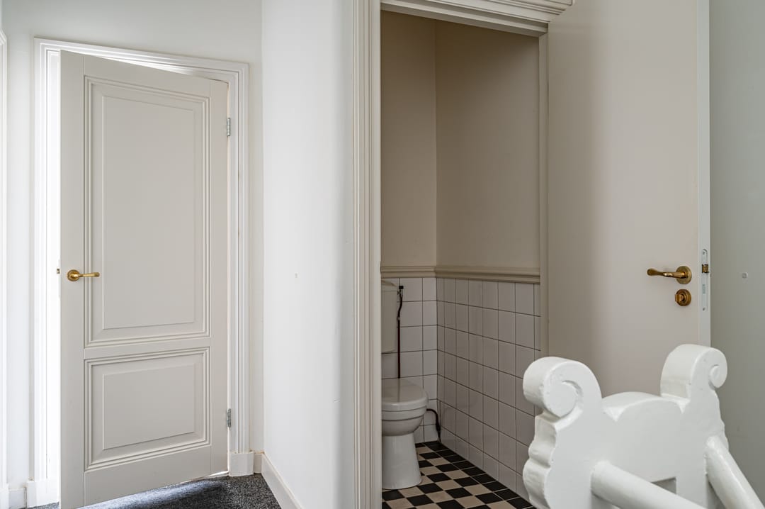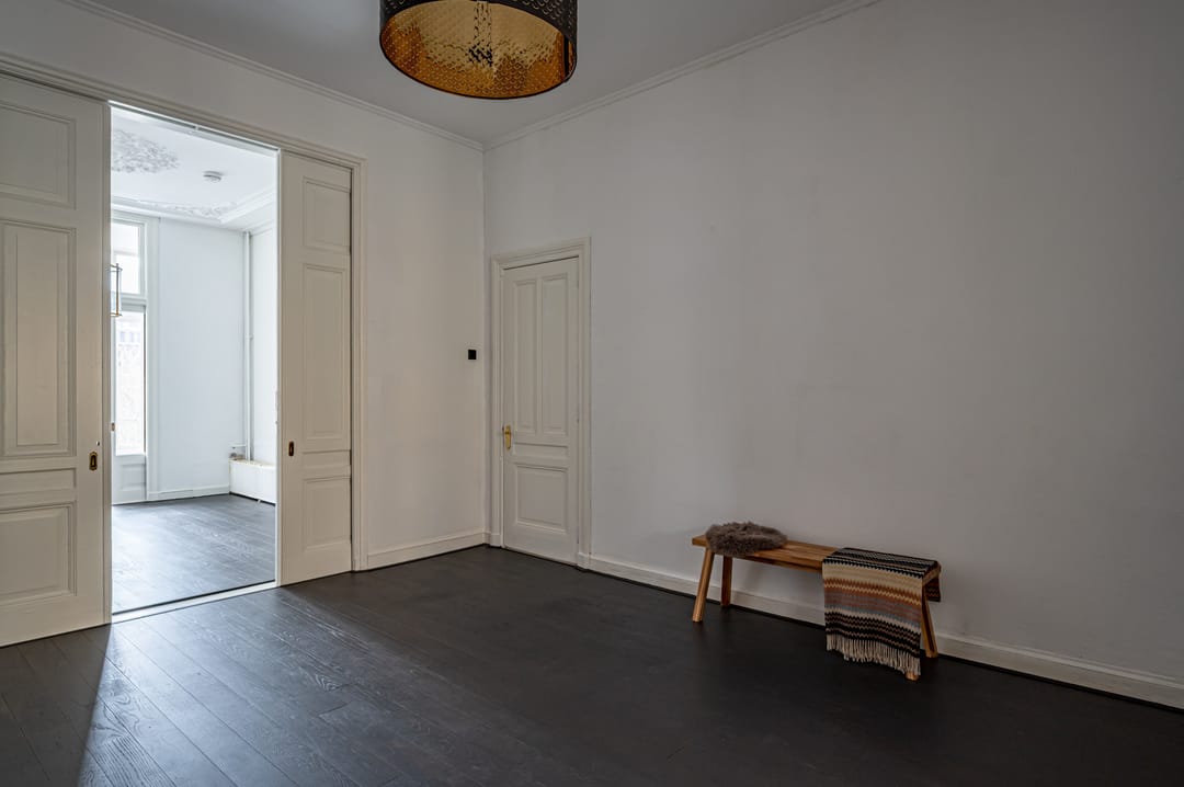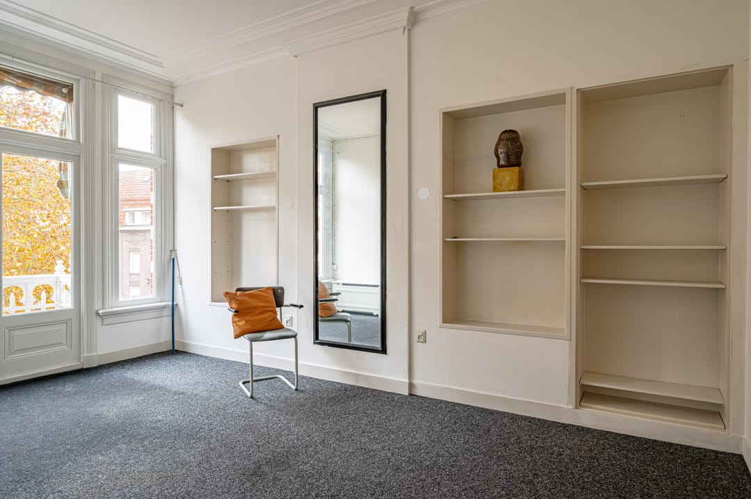 De eerste verdieping is bij uitstek geschikt als zakelijke omgeving. De kamers-en-suite van samen circa 107 m², met hoge plafonds, grote raampartijen en historische details, creëren een indrukwekkende ontvangstruimte voor cliënten en relaties. De sfeer is representatief, licht en professioneel — een omgeving die vertrouwen en kwaliteit uitstraalt. De directe ligging aan de Ossenmarkt zorgt bovendien voor goede herkenbaarheid én een centrale plek in het economisch en cultureel hart van de stad.