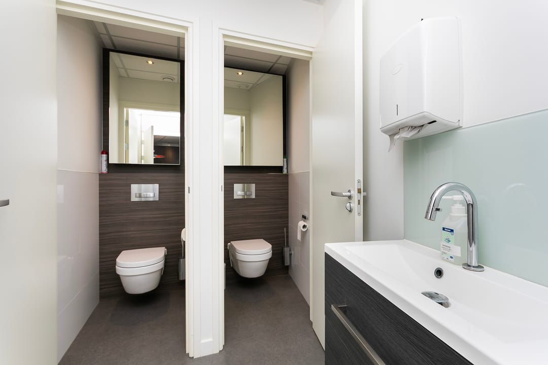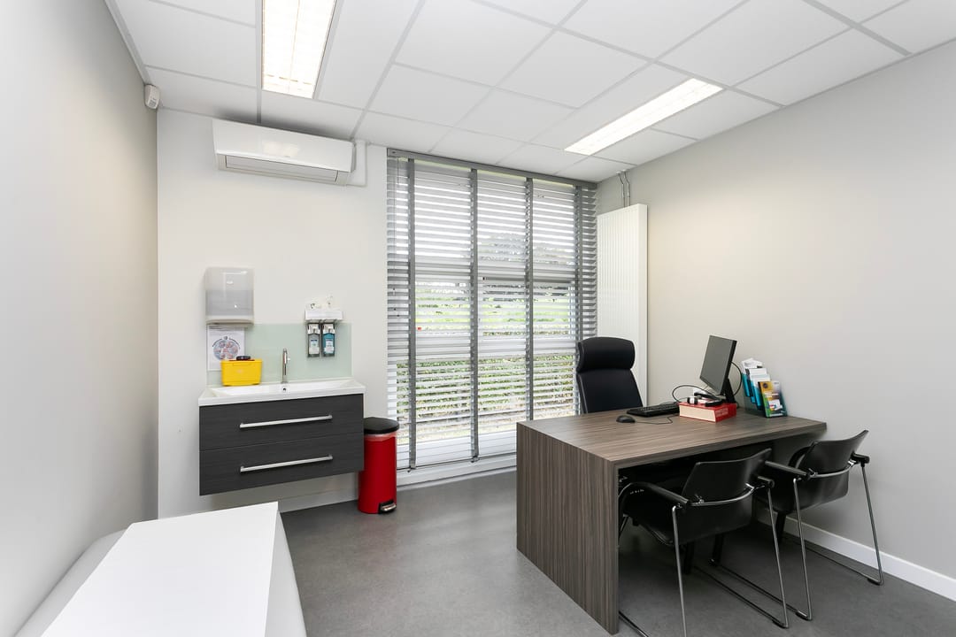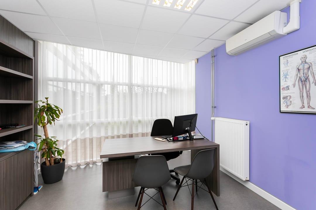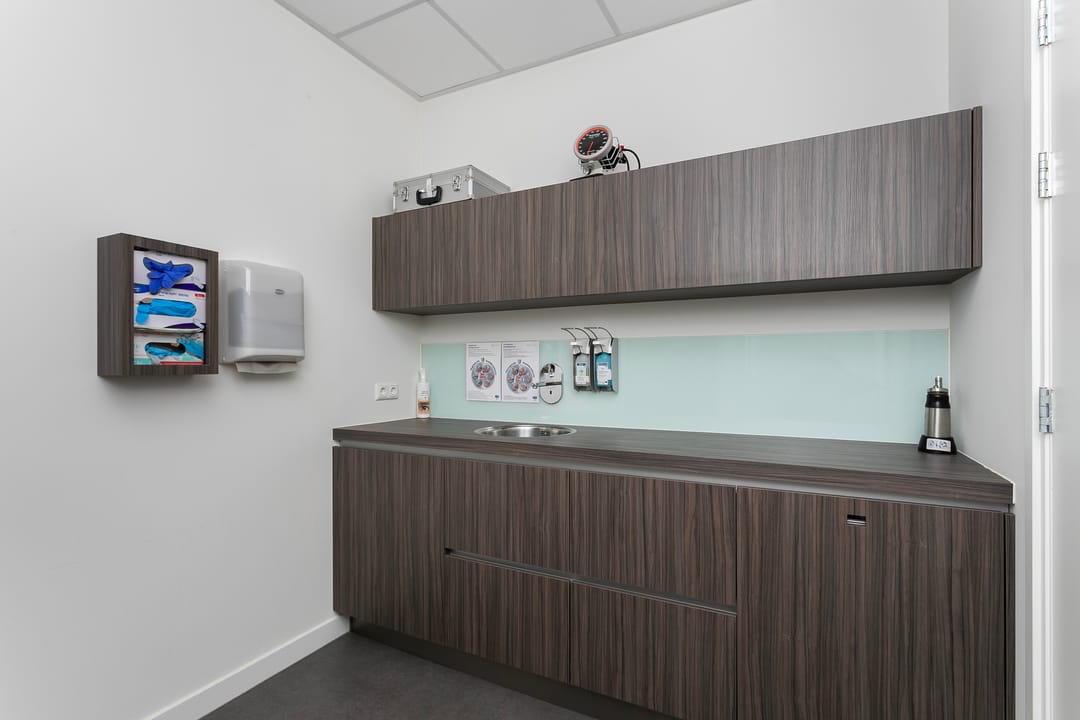Bij binnenkomst valt direct het moderne en verzorgde karakter van het pand op. De centrale gang is uitgerust met op maat gemaakte kasten. Ook de kleedruimte nabij de OK-kamer is voorzien van deze maatwerkoplossingen. Het gebouw beschikt over meerdere praktijkruimten, stuk voor stuk voorzien van airco-units voor een aangenaam binnenklimaat. Het object beschikt over energielabel B (geldig tot 18 februari 2030). Er is gekozen voor energiezuinige LED-verlichting met bewegingssensoren, een systeemplafond, pvc-vloeren en een centrale verwarmingsinstallatie met radiatoren. Tevens is er een alarmsysteem en camerabewaking aanwezig.